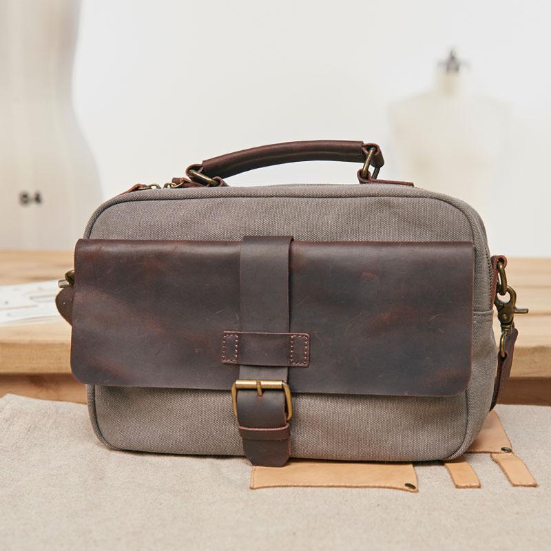 Mens Canvas Gray Cool Messenger Bag Side Bag Canvas Handbag for Men