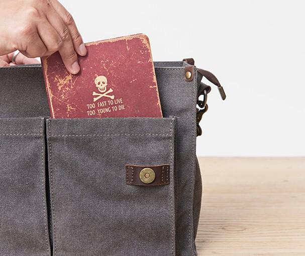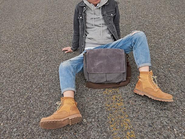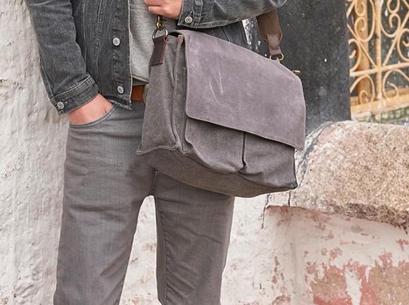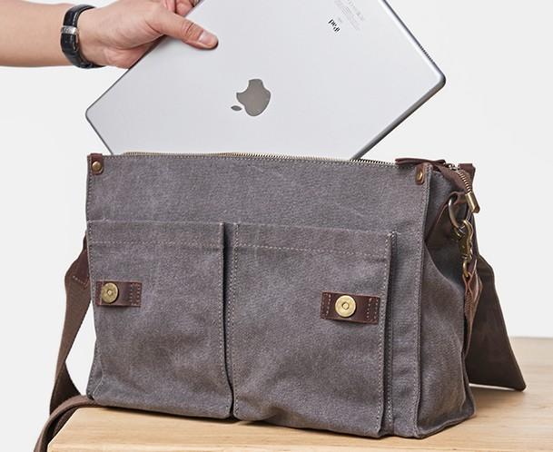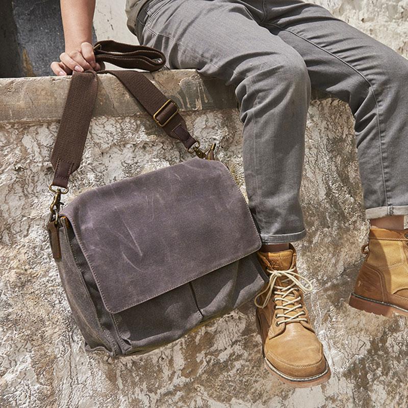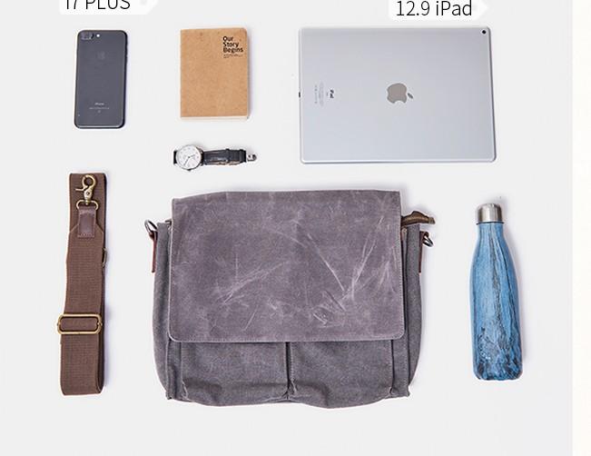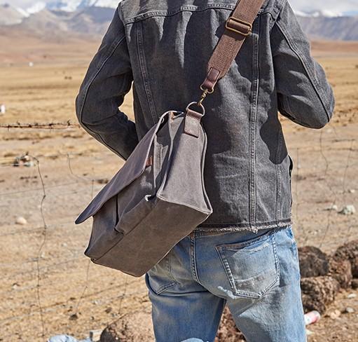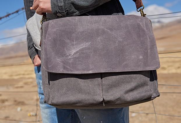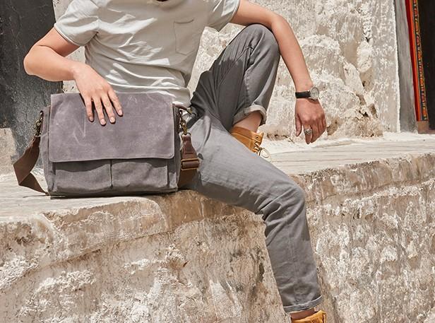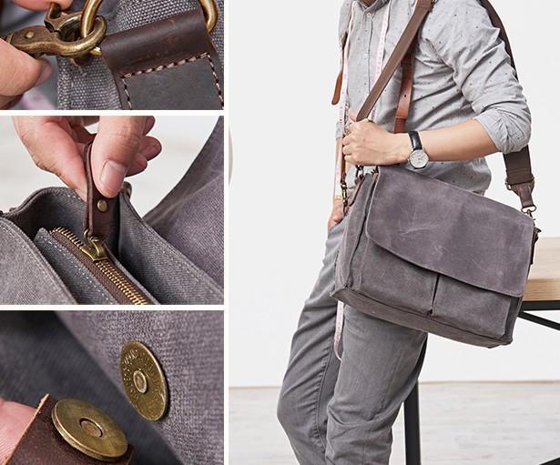 Design: Mens Canvas Gray Cool Side Bag Messenger Bag Canvas Shoulder Bag for Men