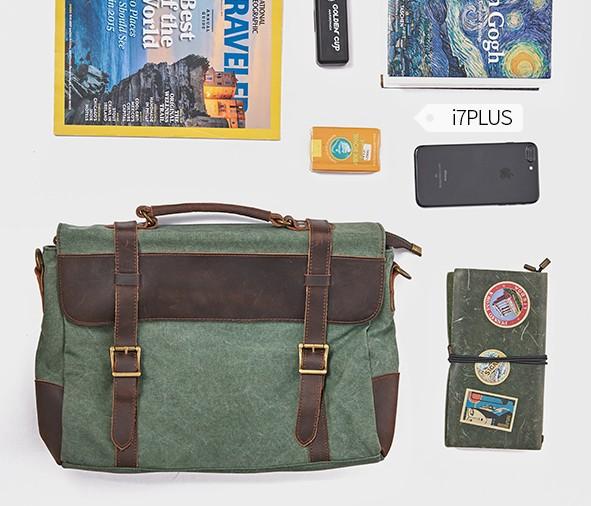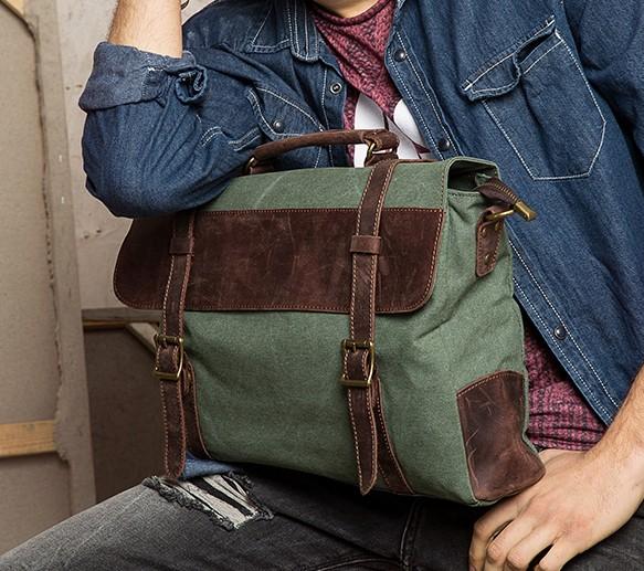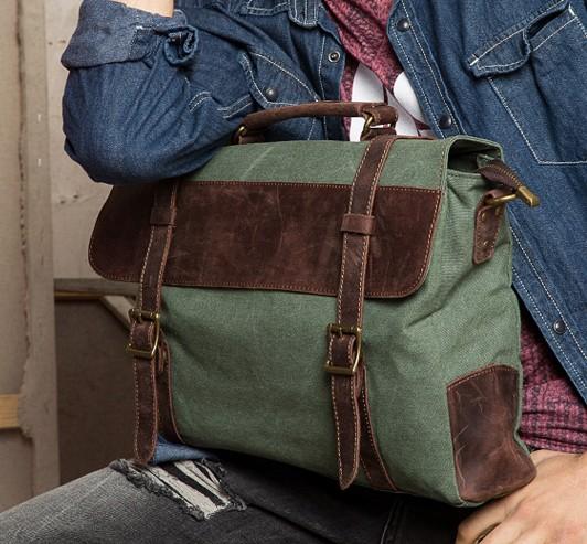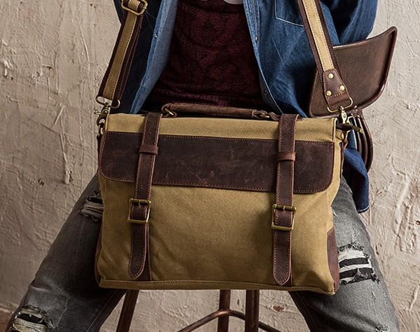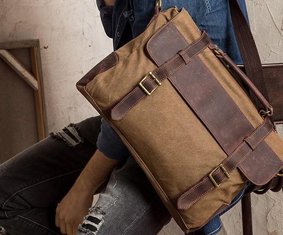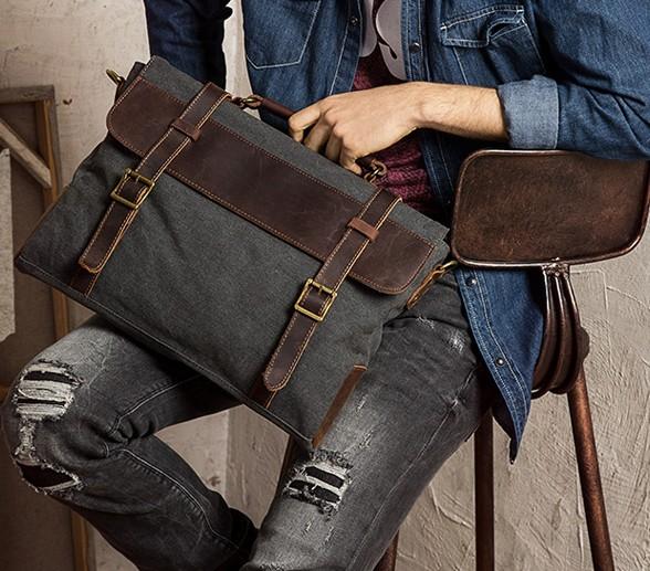 Design: Mens Canvas Leather Cool Side Bag Messenger Bag Canvas Handbag for Men