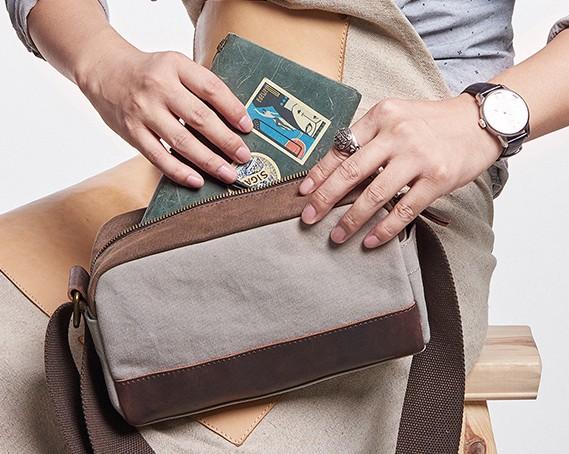 Design: Mens Canvas Gray Cool Side Bag Messenger Bag Canvas Shoulder Bag for Men