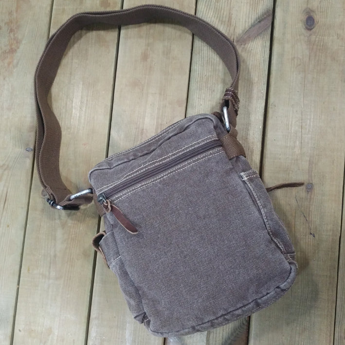 Design: Mens Canvas Side Bag Canvas Vertical Messenger Bag Gray Small Courier Bag Shoulder Bag for Men