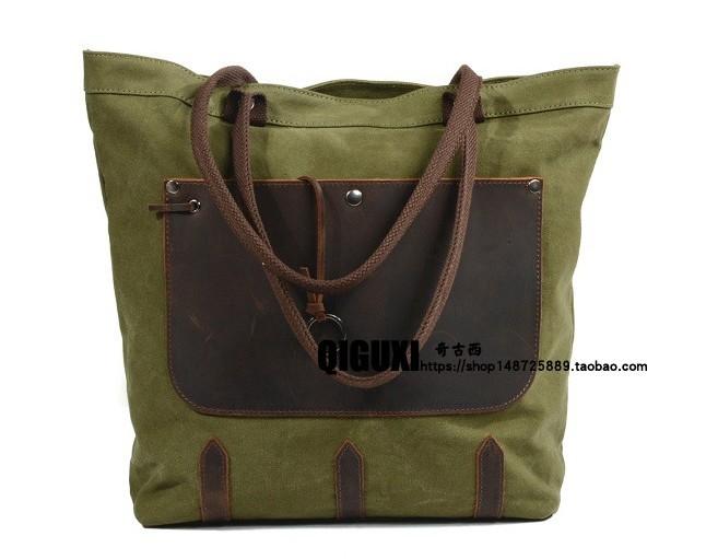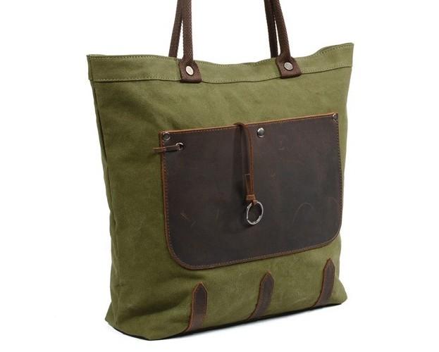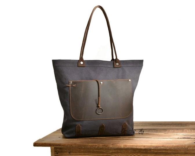 Design: Mens Waxed Canvas Large Handbag Canvas Tote Bag Canvas Shoulder Bag for Men
