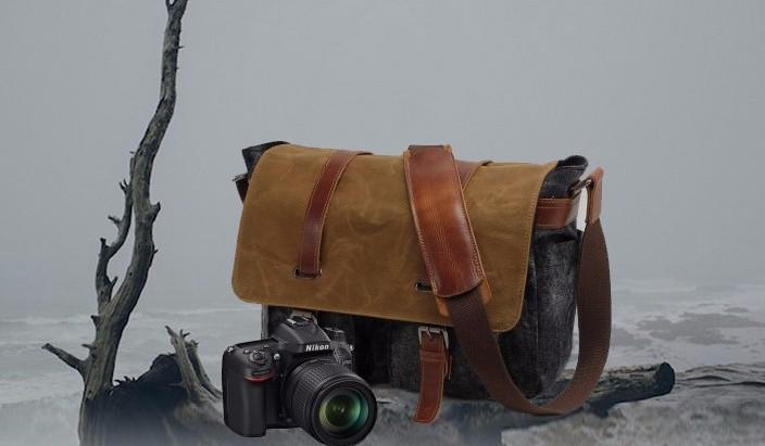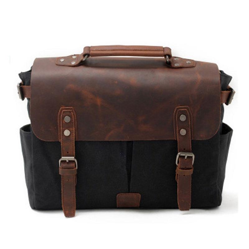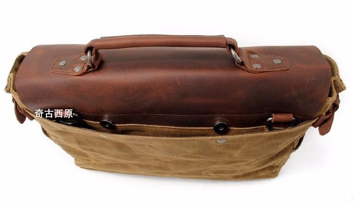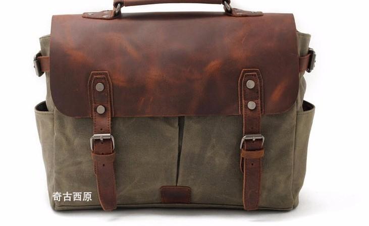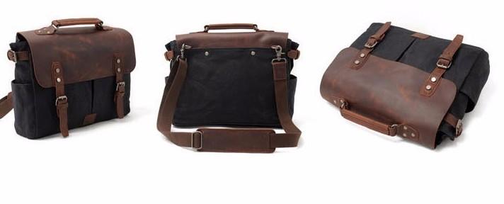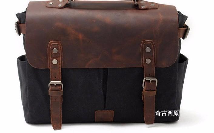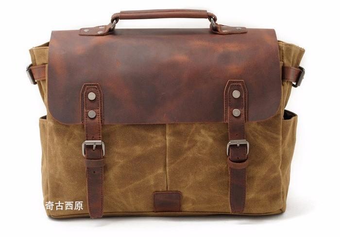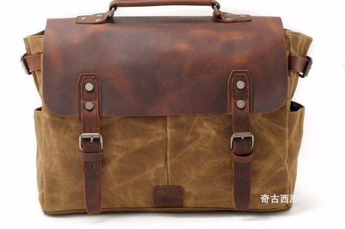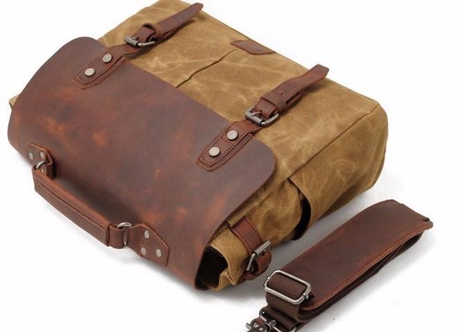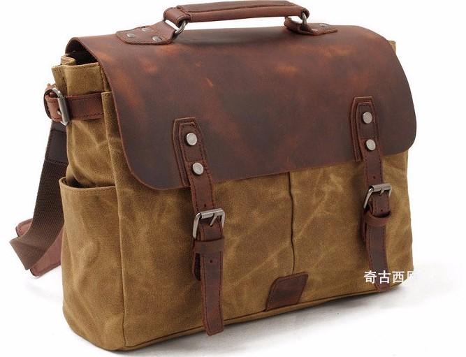 Style: Mens Waxed Canvas Leather Side Bag Messenger Bag Canvas Courier Bag for Men