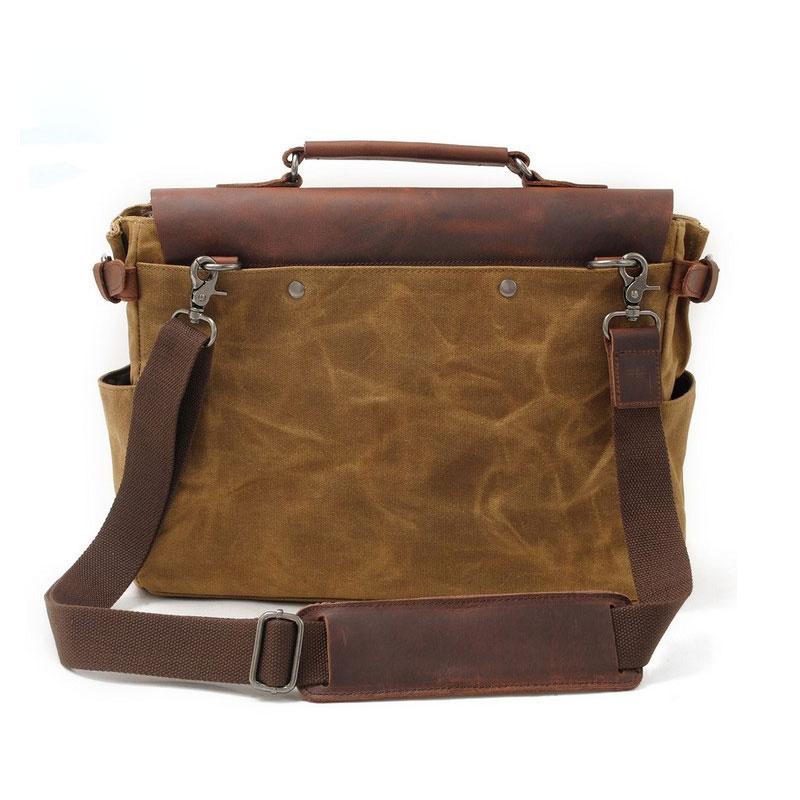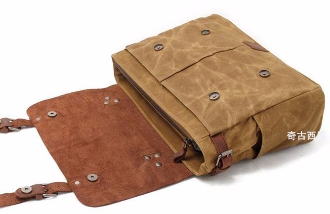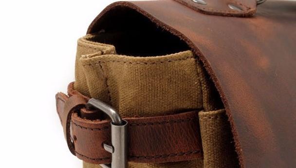Design: Mens Waxed Canvas Leather Side Bag Messenger Bag Canvas Courier Bag for Men