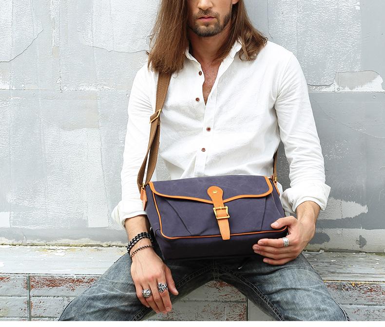 Design: Navy Blue Canvas Mens Casual Side Bag Side Bag Small Messenger Bags Casual Courier Bags for Men