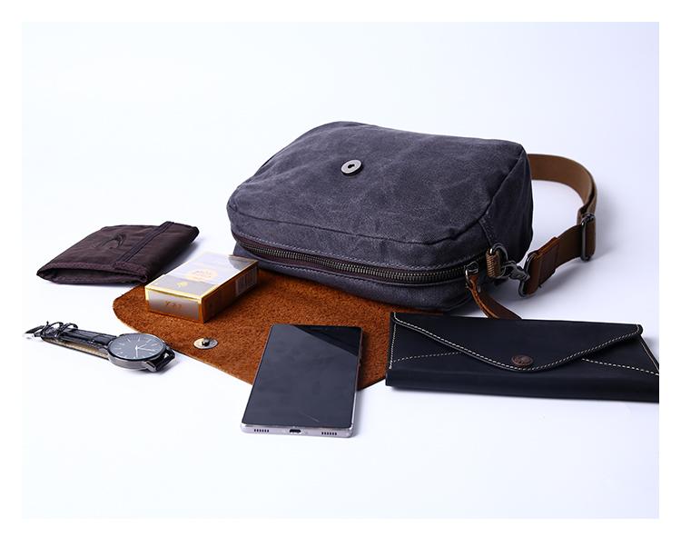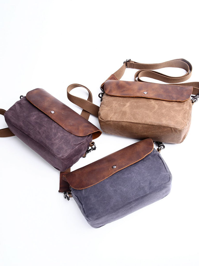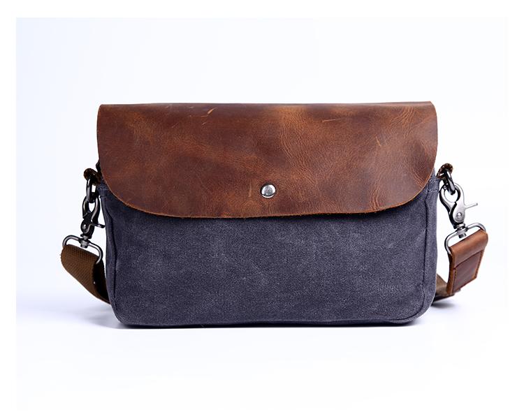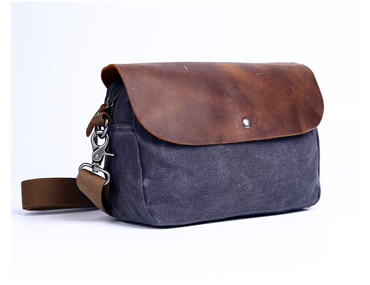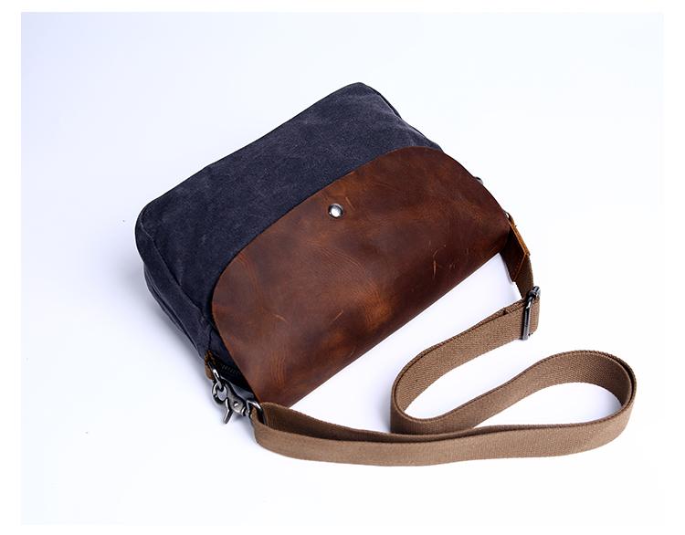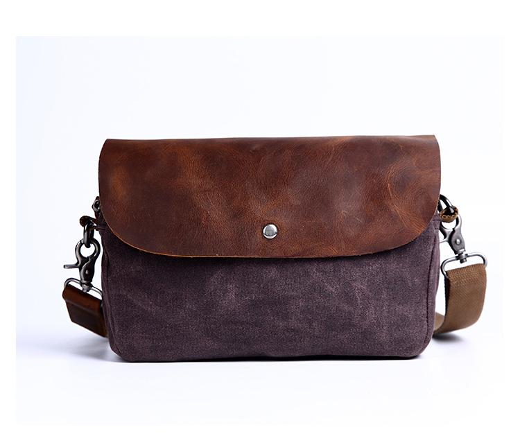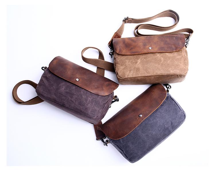 Design: Simple Casual Waxed Canvas Leather Mens Womens Side Bag Shoulder Bag Messenger Bag for Men