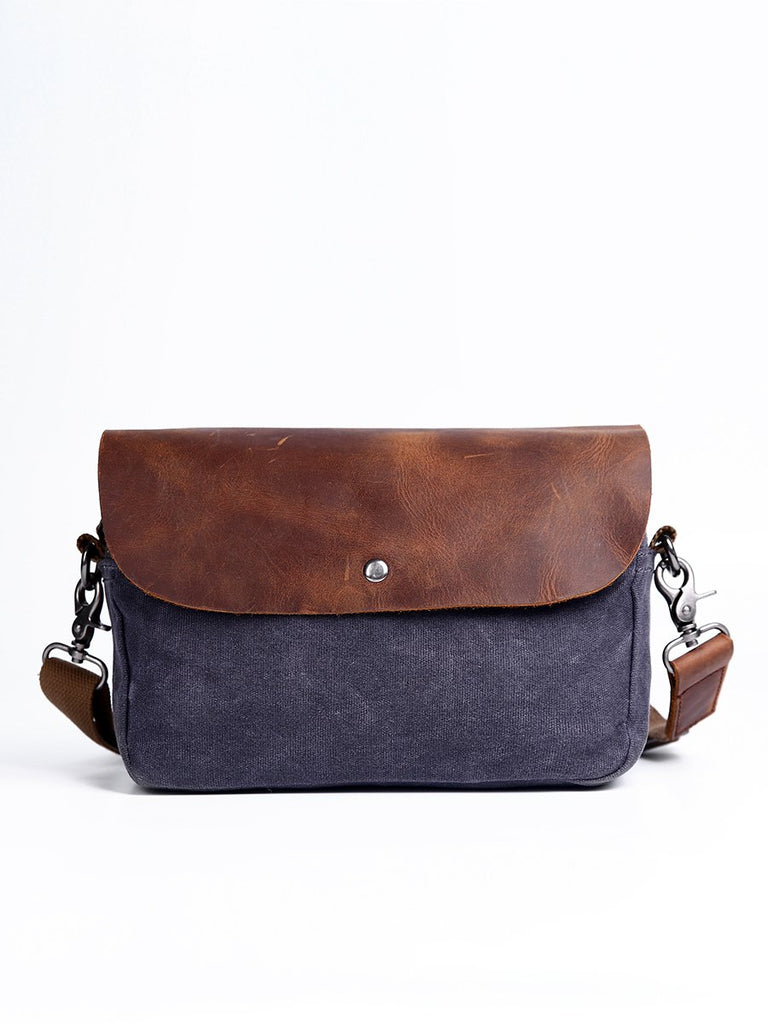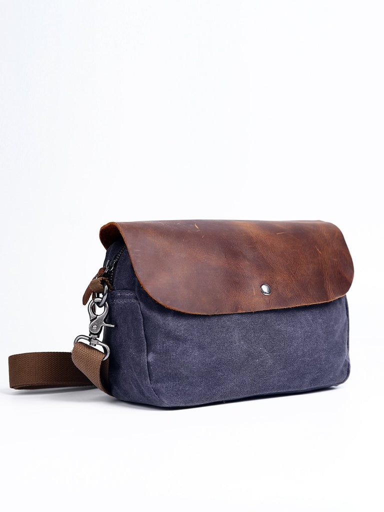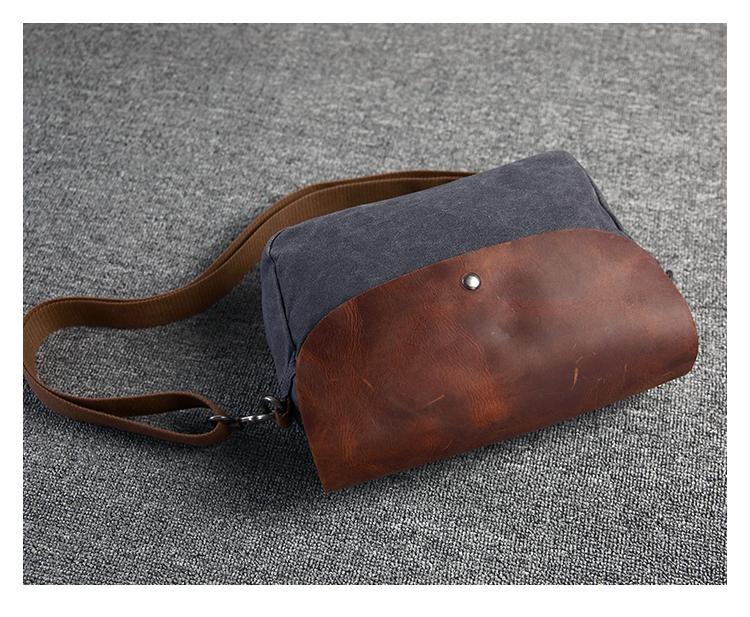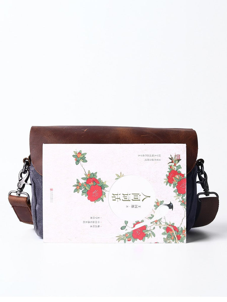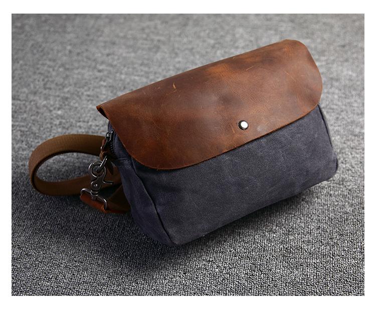 Design: Simple Casual Waxed Canvas Leather Mens Womens Side Bag Shoulder Bag Messenger Bag for Men
