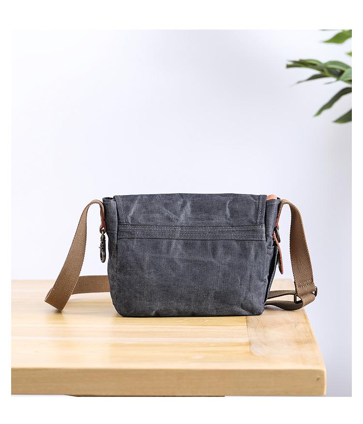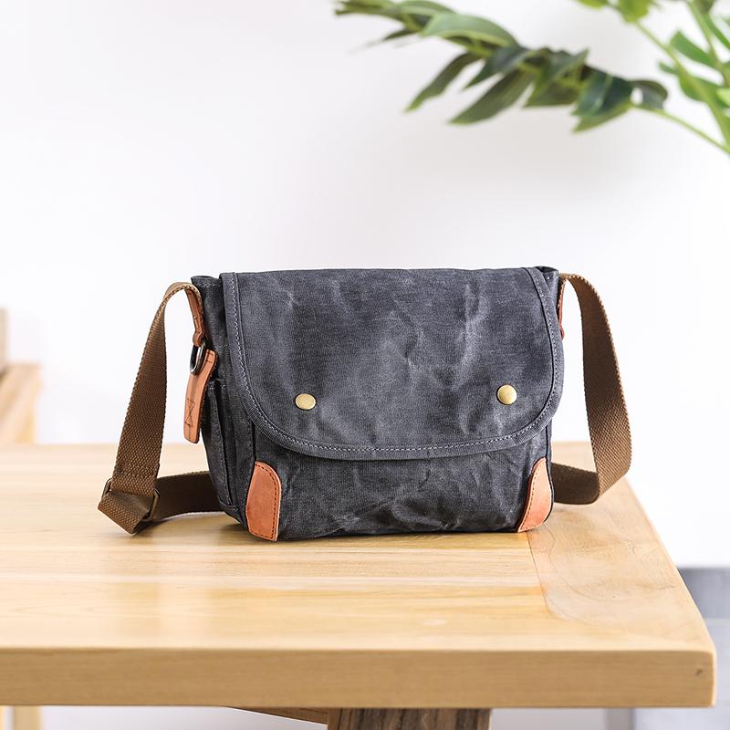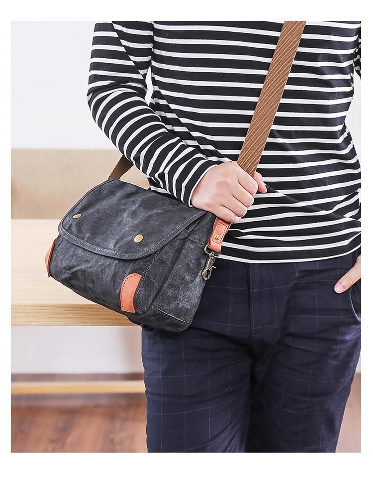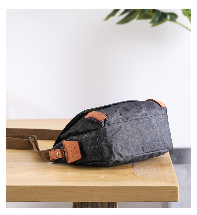 Design: Wax Canvas Leather Mens Dark Gray Side Bag Courier Bag Khaki Messenger Bag for Men