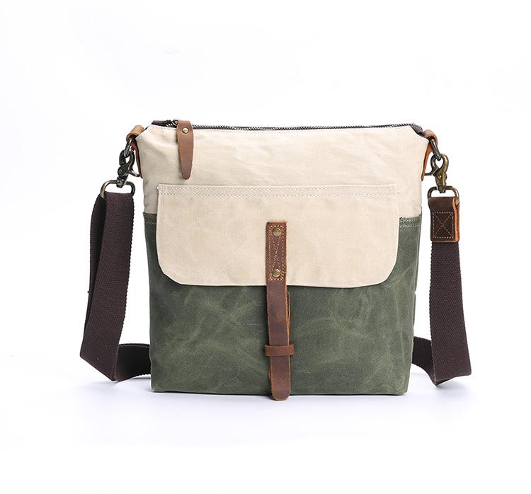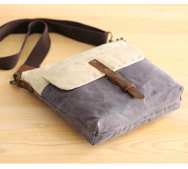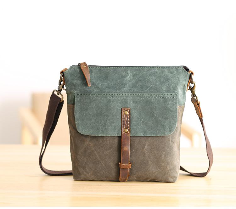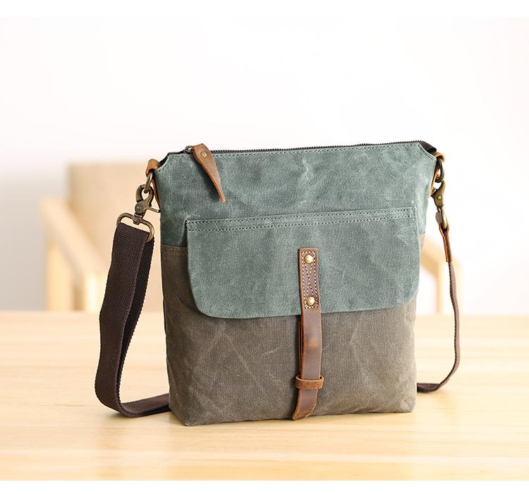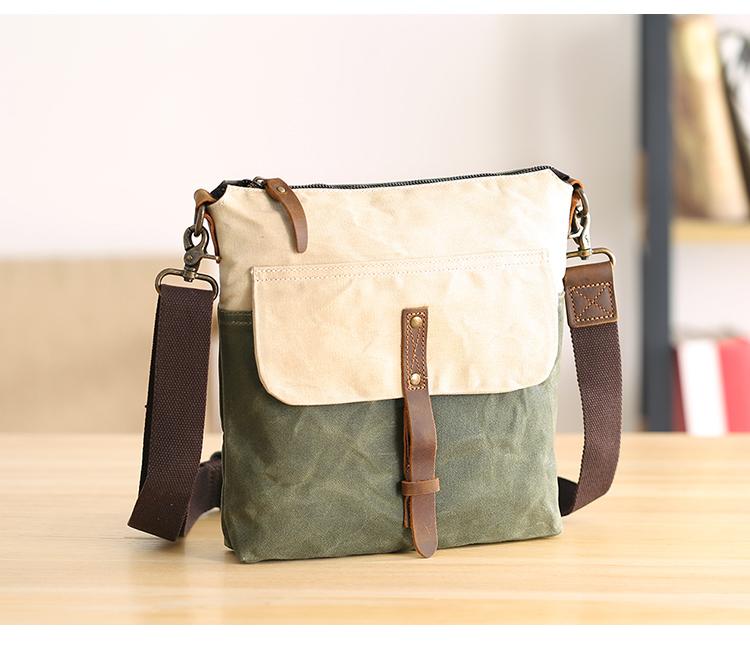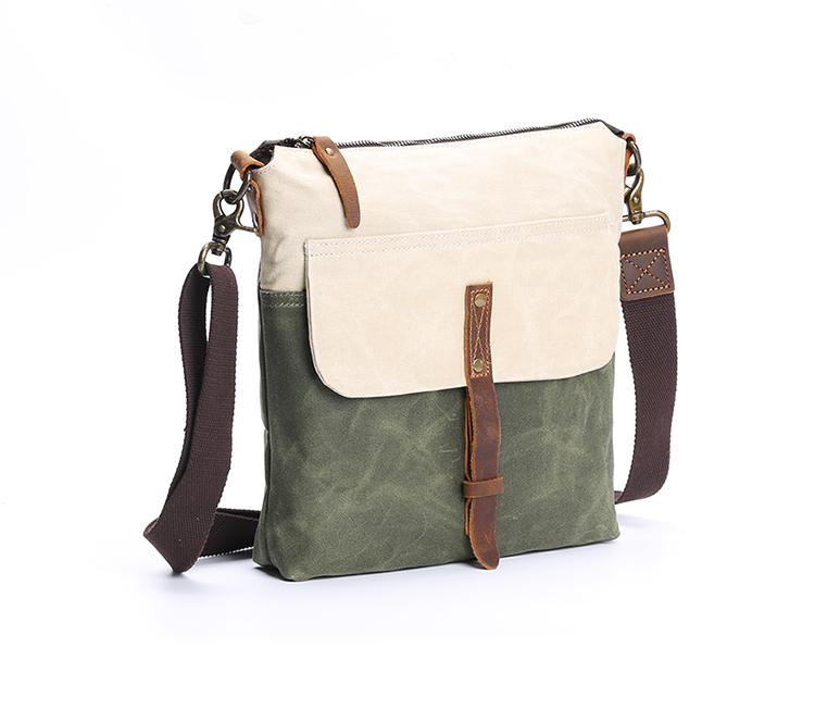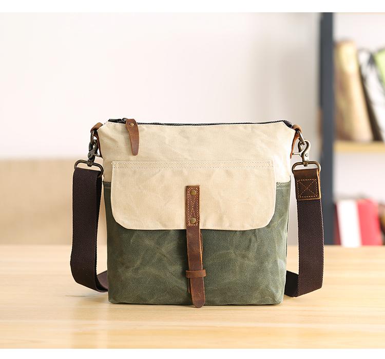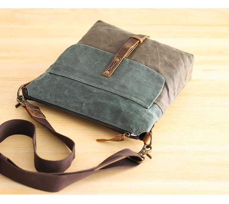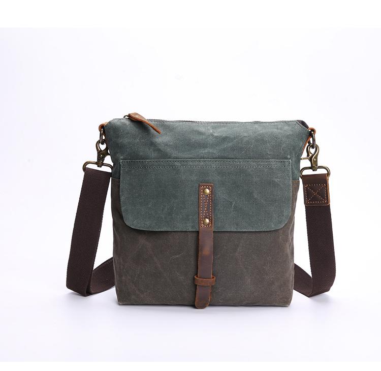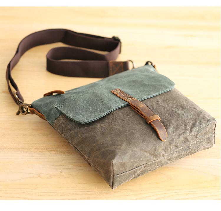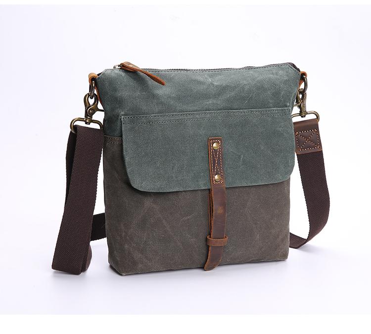 Design: Wax Canvas Leather Mens Small Waterproof Shoulder Bag Side Bag Courier Bag Messenger Bag for Men
