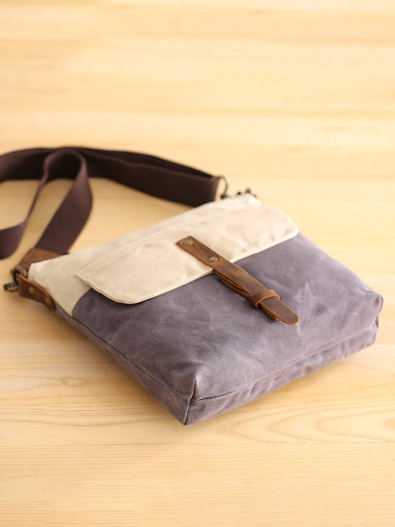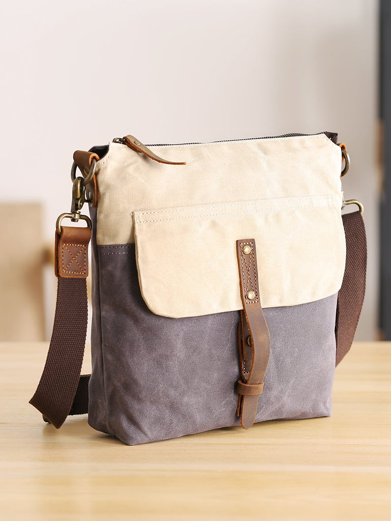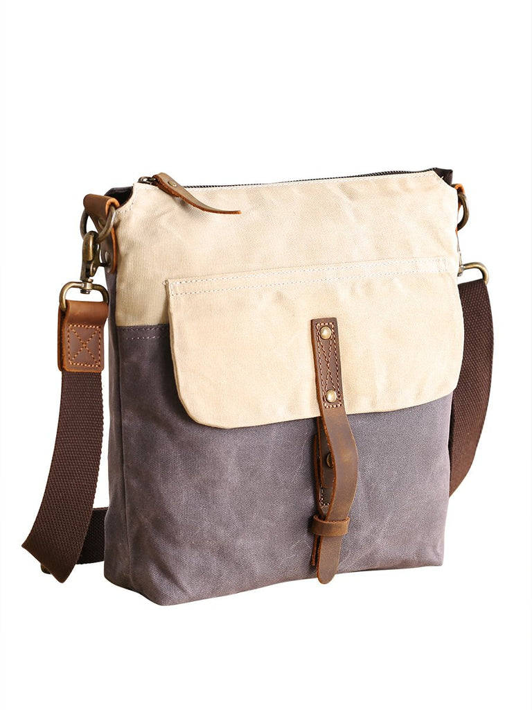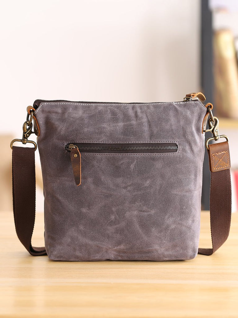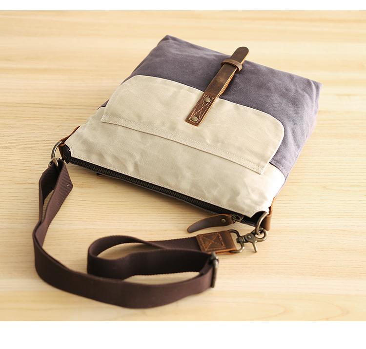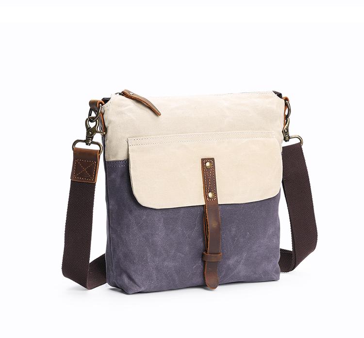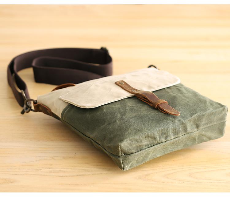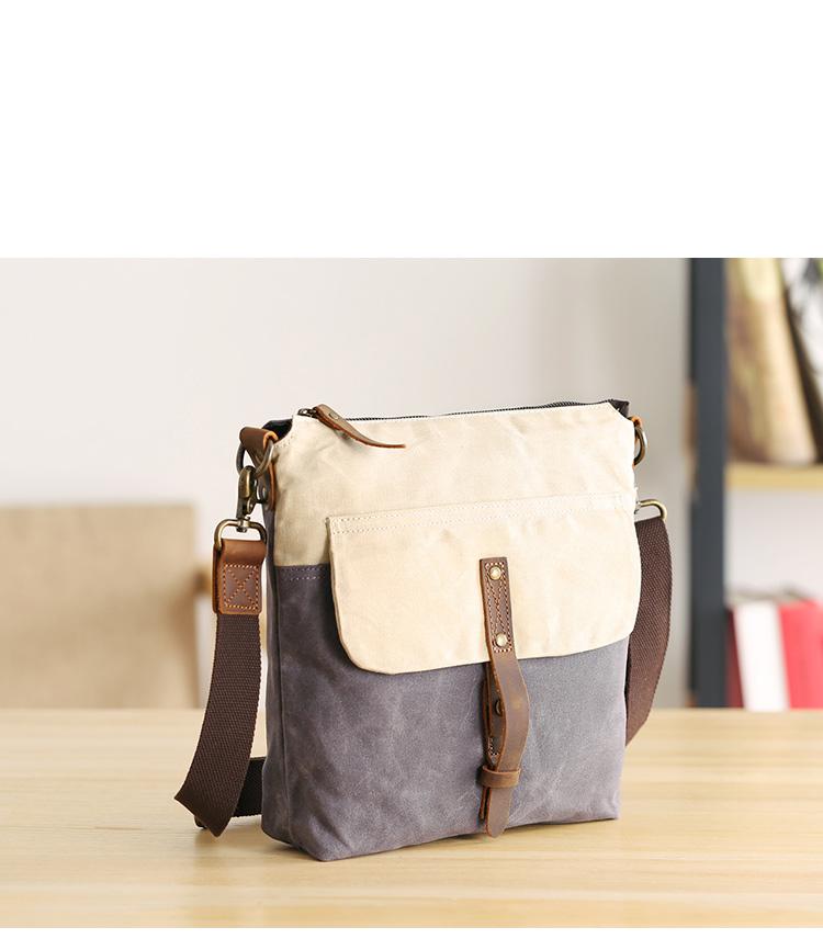 Design: Wax Canvas Leather Mens Small Waterproof Shoulder Bag Side Bag Courier Bag Messenger Bag for Men