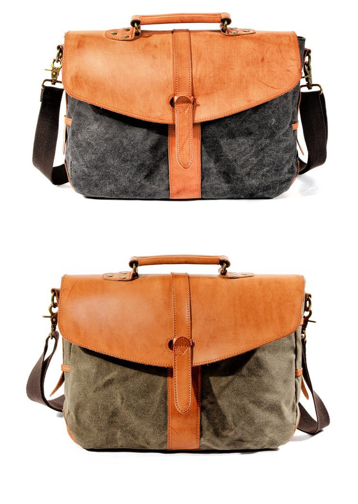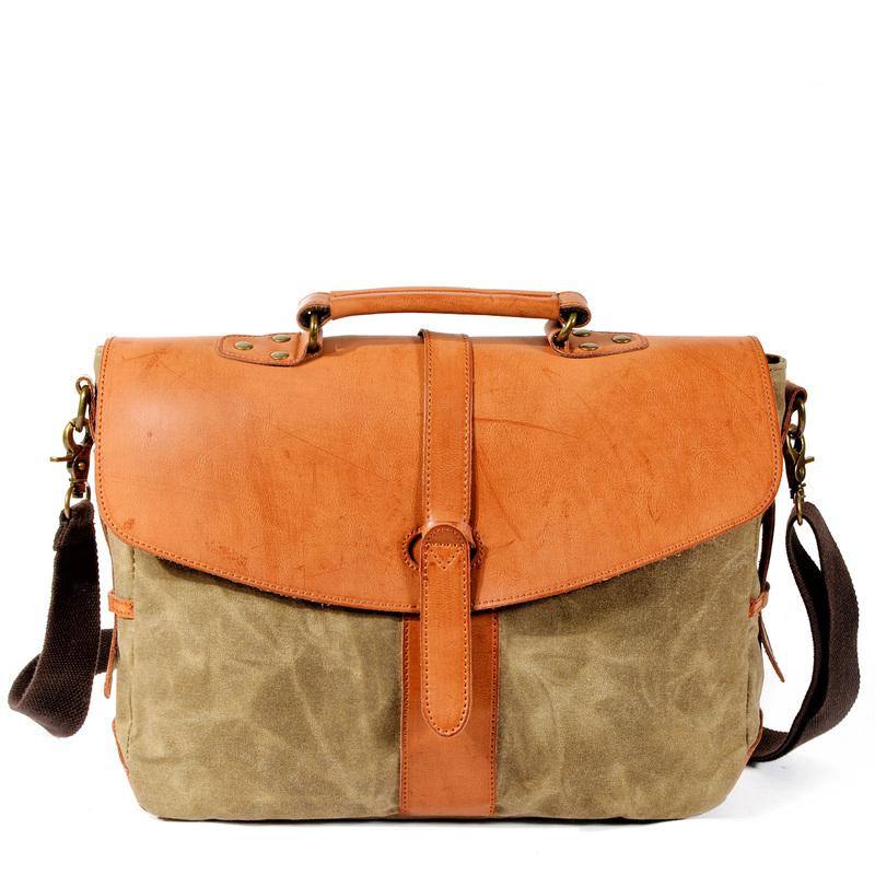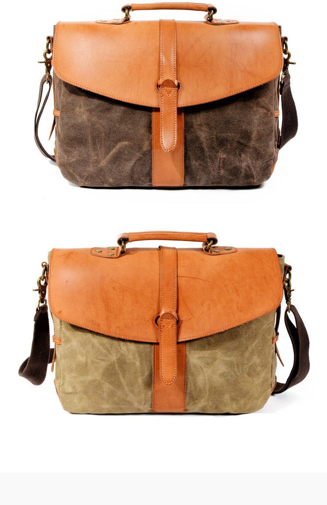 Design: Waxed Canvas Leather Mens Casual Briefcase Handbag Messenger Bag Side Bag Computer Bag For Men