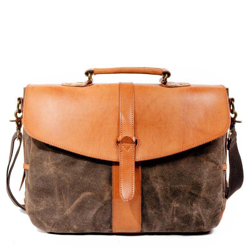 Style: Waxed Canvas Leather Mens Casual Briefcase Handbag Messenger Bag Side Bag Computer Bag For Men