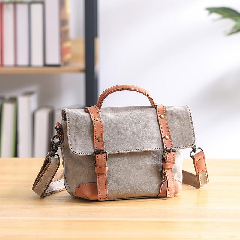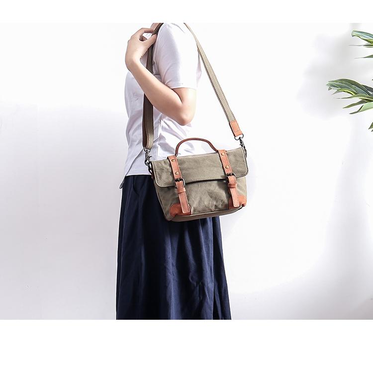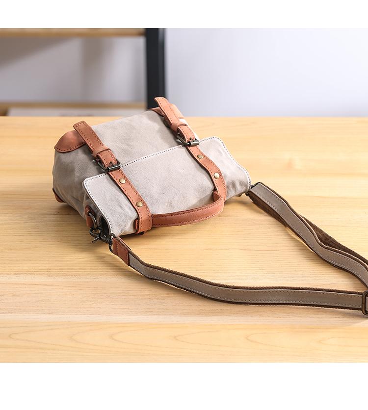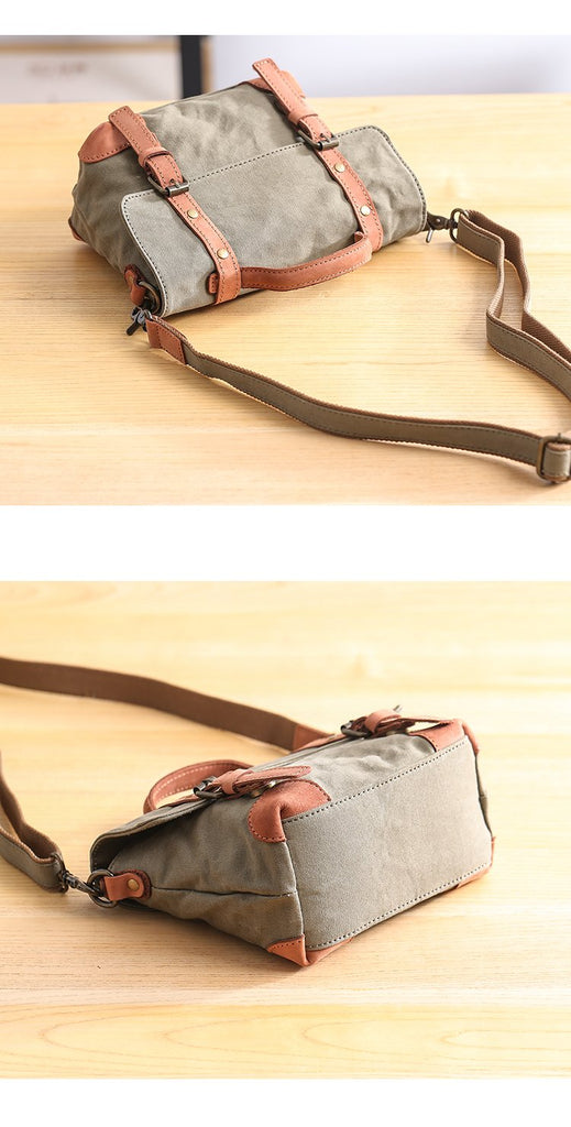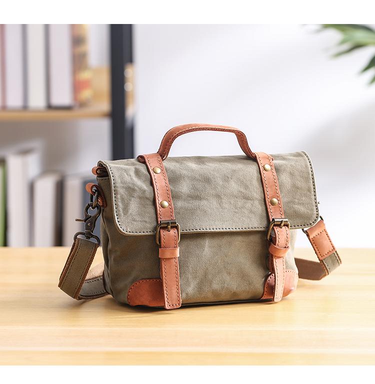 Design: Waxed Canvas Leather Mens Portable Womens Side Shoulder Bag Messenger Bag for Men