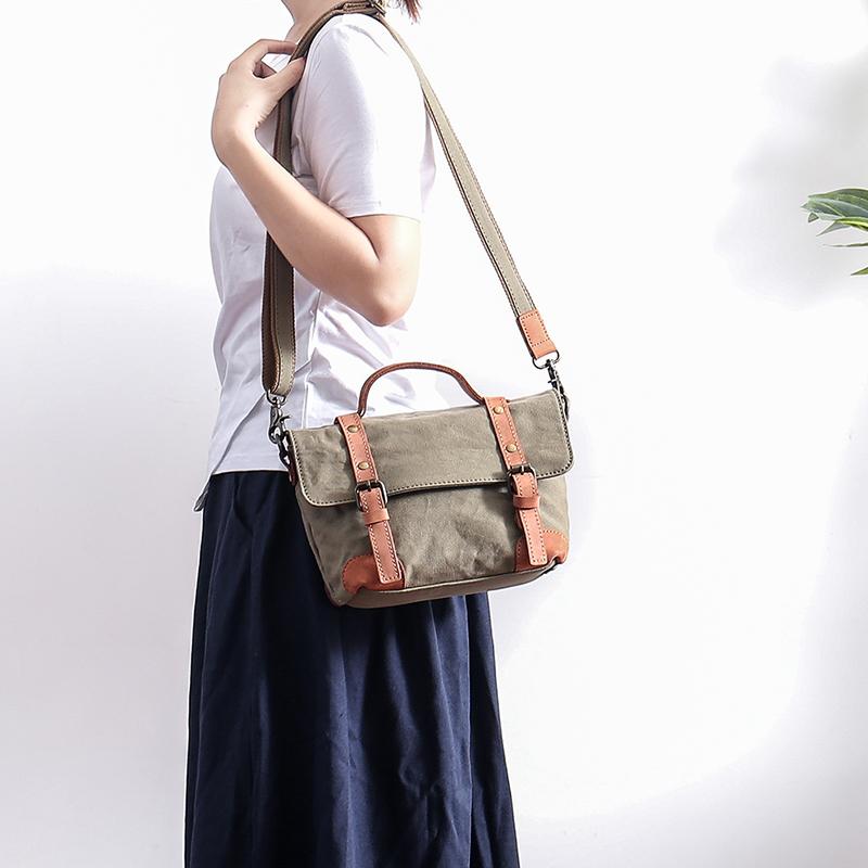 Style: Waxed Canvas Leather Mens Portable Womens Side Shoulder Bag Messenger Bag for Men