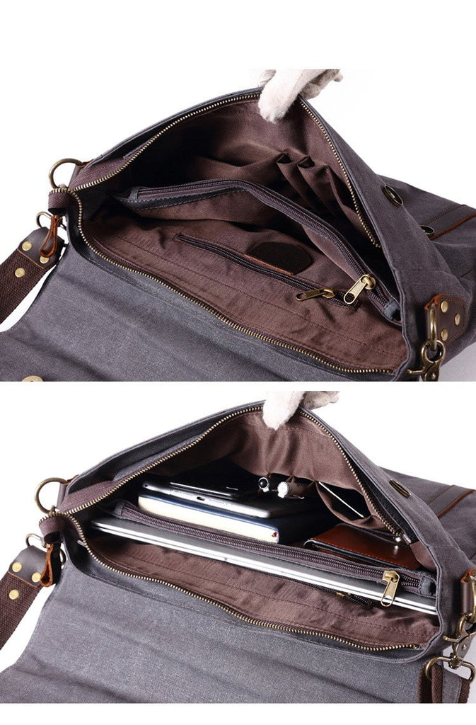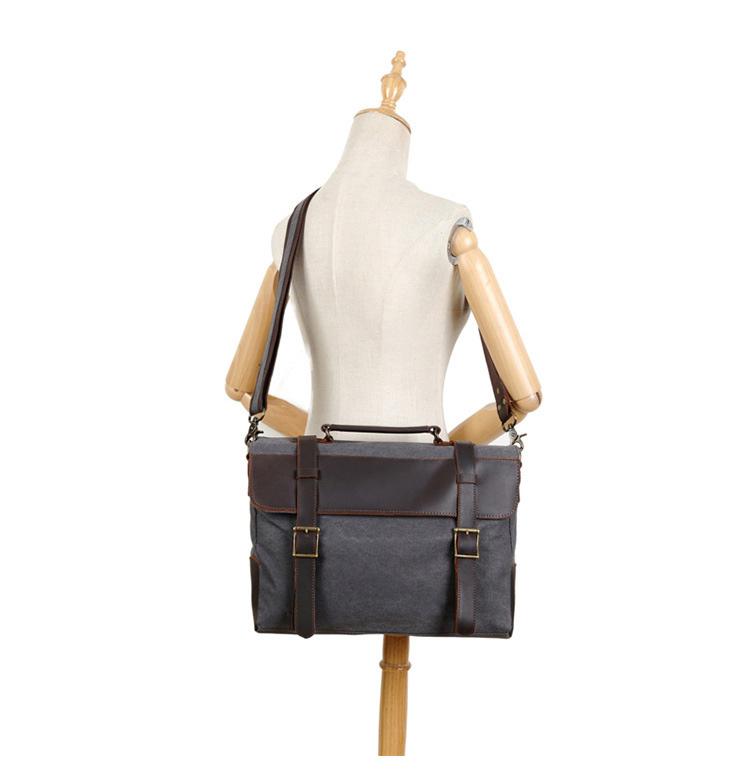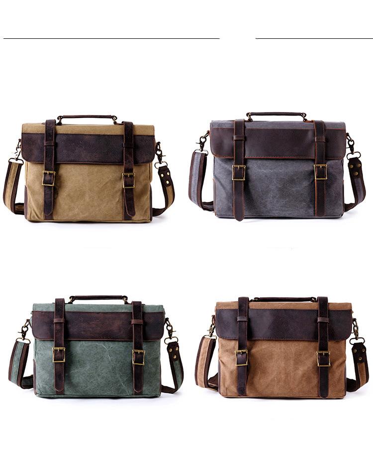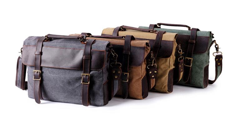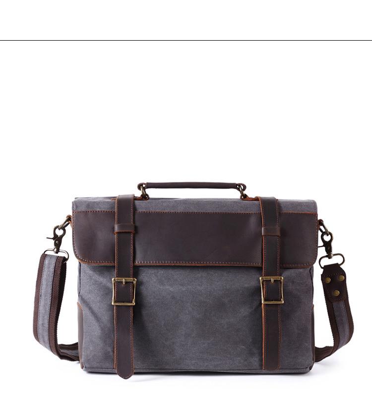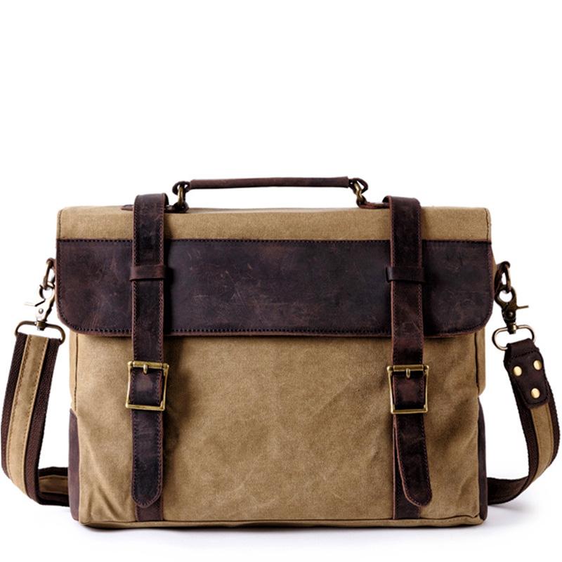 Style: Waxed Canvas Leather Mens Retro Handbag Messenger Bag Computer Bag For Men