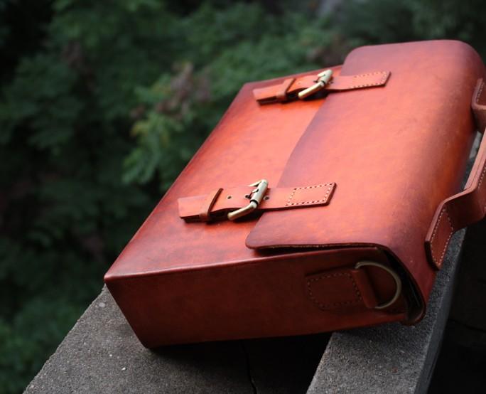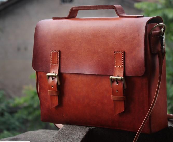 Design: Cool Handmade Leather Mens Briefcase Business Laptop Briefcase for men