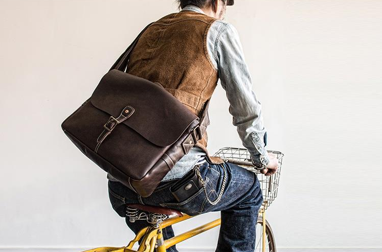 Style: Genuine Leather Mens Messenger Bag Briefcase Laptop Bag Bike Bag Cycling Bag for men
