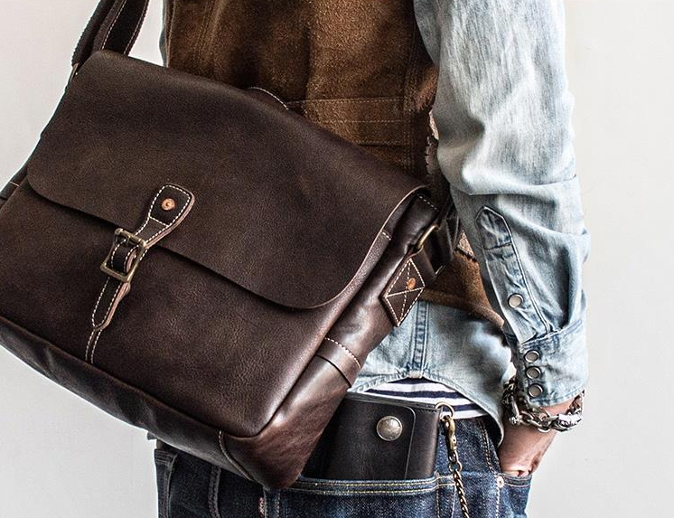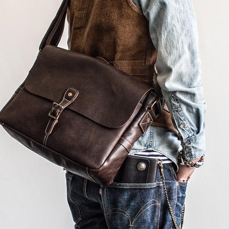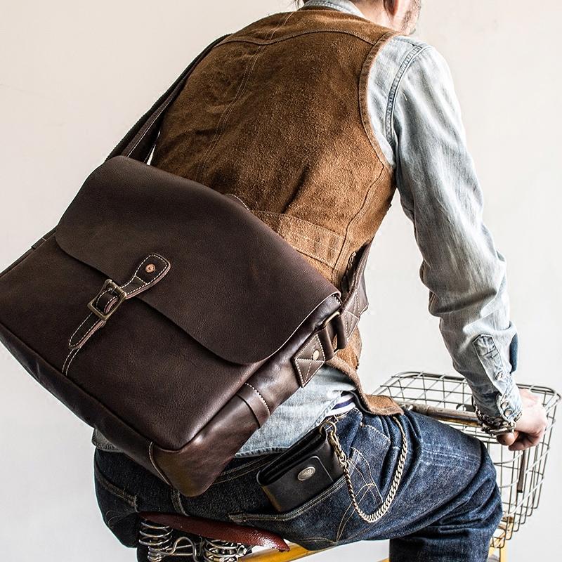 Design: Genuine Leather Mens Messenger Bag Briefcase Laptop Bag Bike Bag Cycling Bag for men