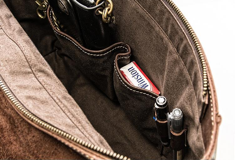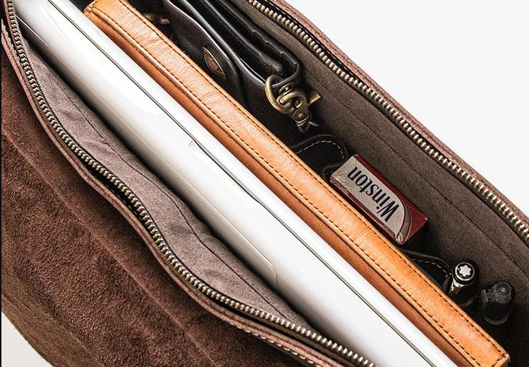 Slots: 1 zipper slot, 1 laptop slot, 1 book slot, 3 wallet slots, 1 phone slot