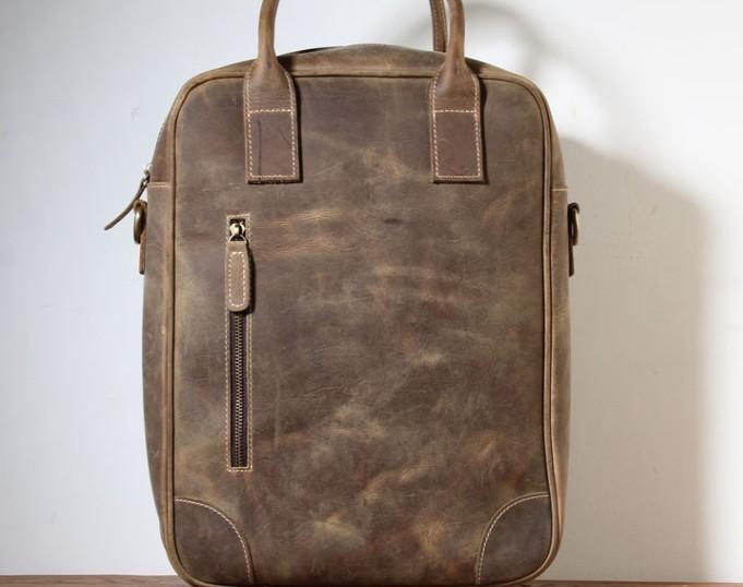 Design: Handmade Leather Mens Cool Backpack Bag Messenger Bag Briefcase Work Bag Laptop Bag for men