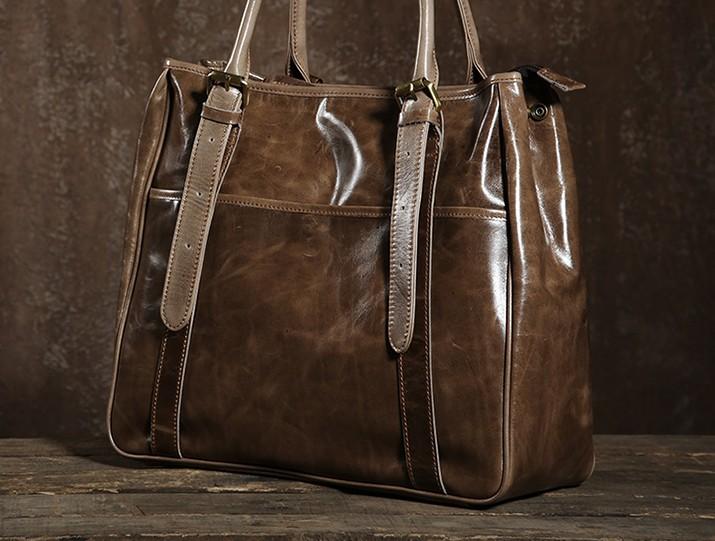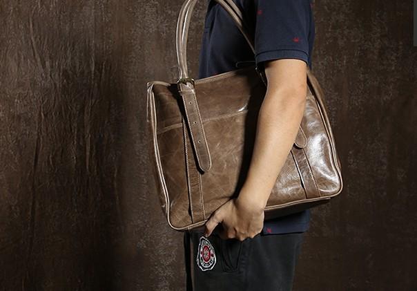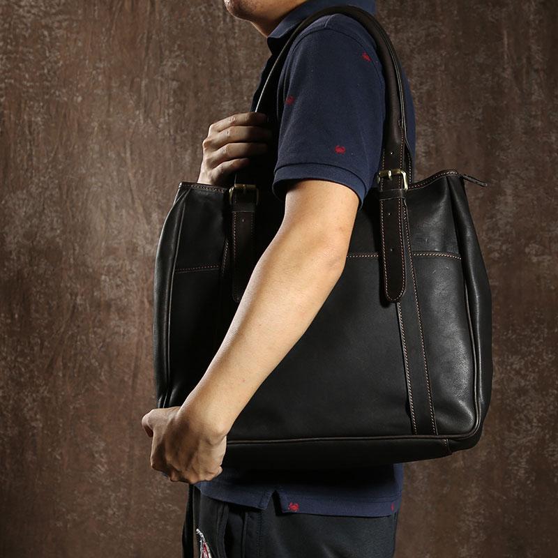 Design: Handmade Leather Mens Tote Bag Cool Handbag Shoulder Bag Work Bag Laptop Bag for Men