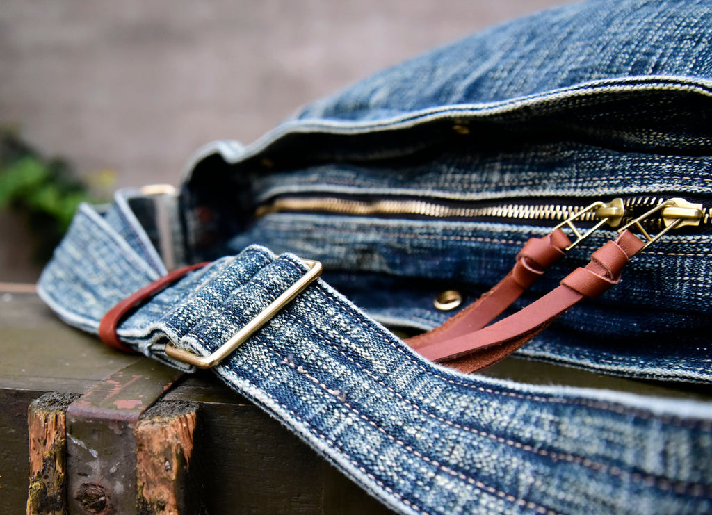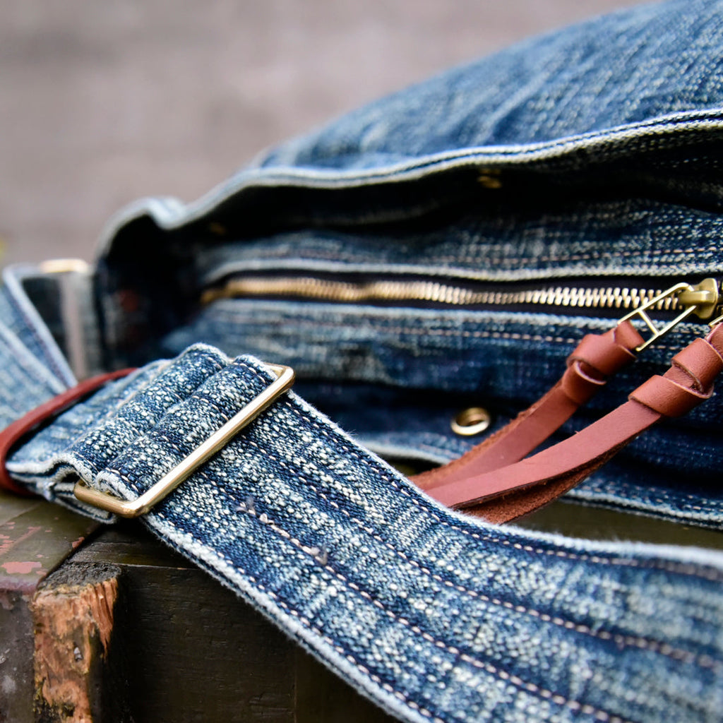 Design: Large Denim Crossbody Bag for Men Washed Distressed Womens Large Jeans Shoulder Bag Blue Denim Messenger Bag