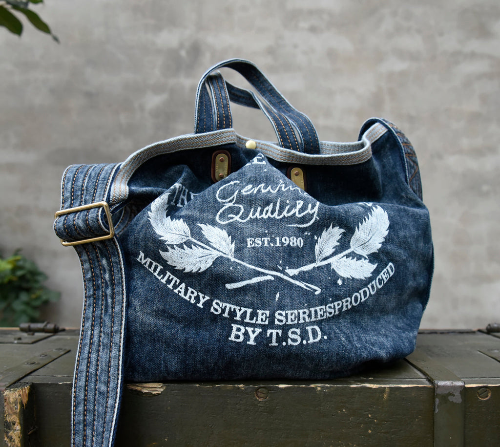 Design: Blue Denim Tote Handbag Denim Tote Bag Blue Denim Tote Shoulder Bag Jean Tote Bag