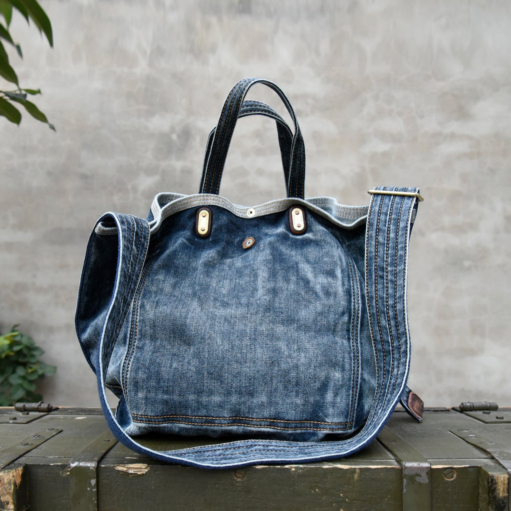 Accessori e Denim Tote Handbag Denim Tote Bag Blue Denim Tote Shoulder Bag Jean Tote Bag