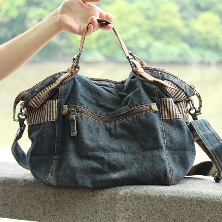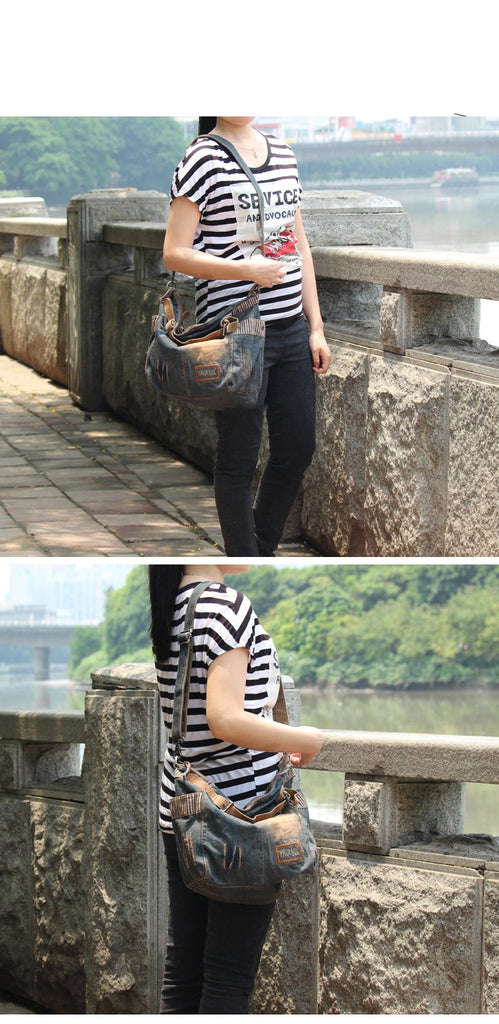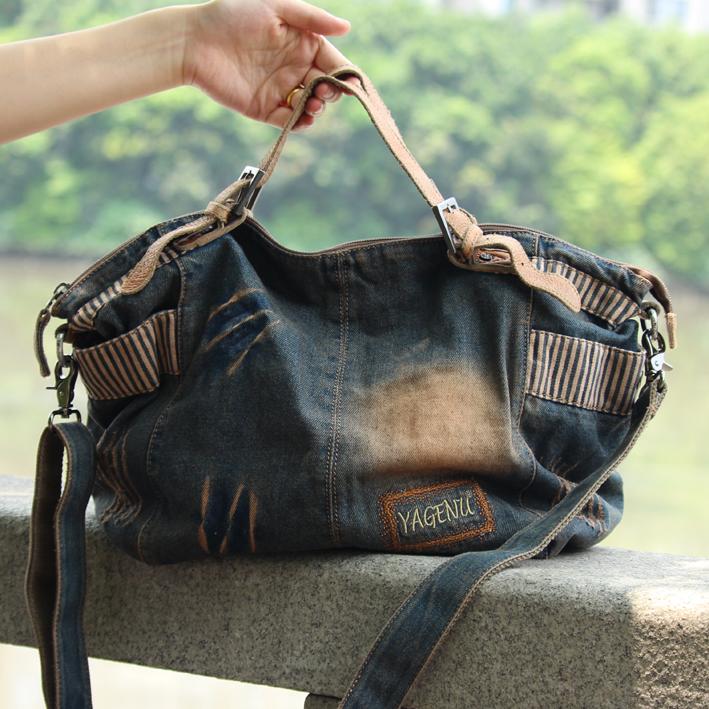 Fashion Denim Blue Mens Large Postman Bag Jean Messenger Bags Large Courier Bag For Men