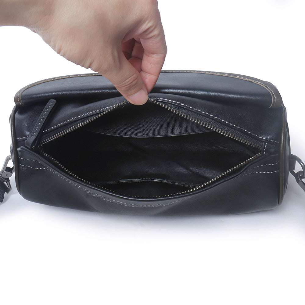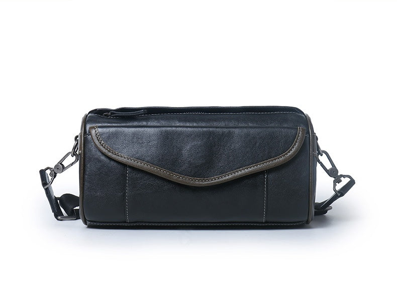 Barrel Leather Bag - Compact Crossbody for Modern Men