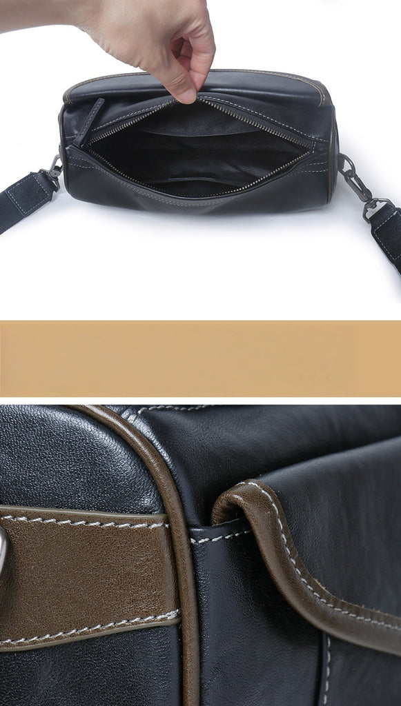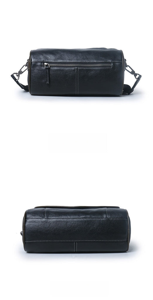 Design: Black Barrel Leather Bag Mens Barrel Crossbody Bag Barrel Shoulder Bag for Men