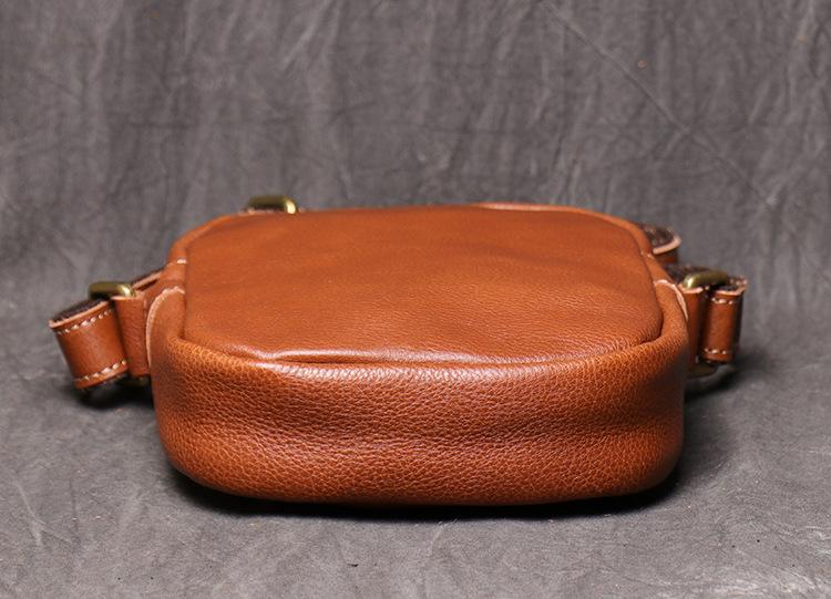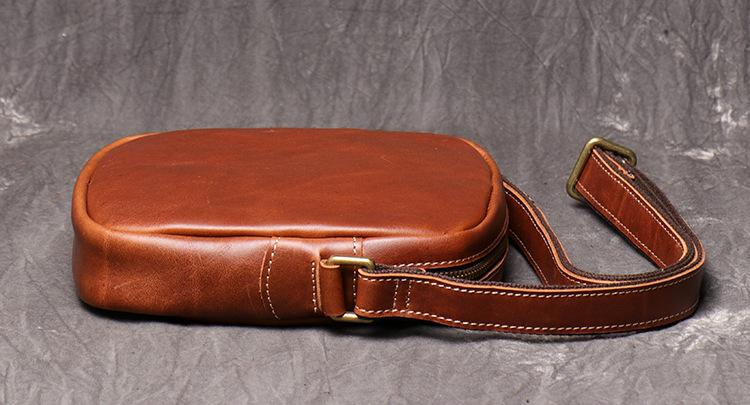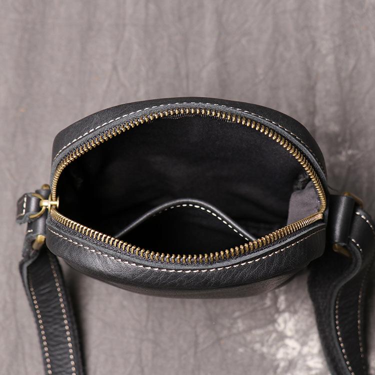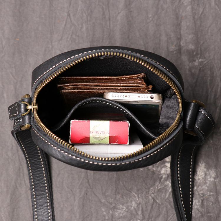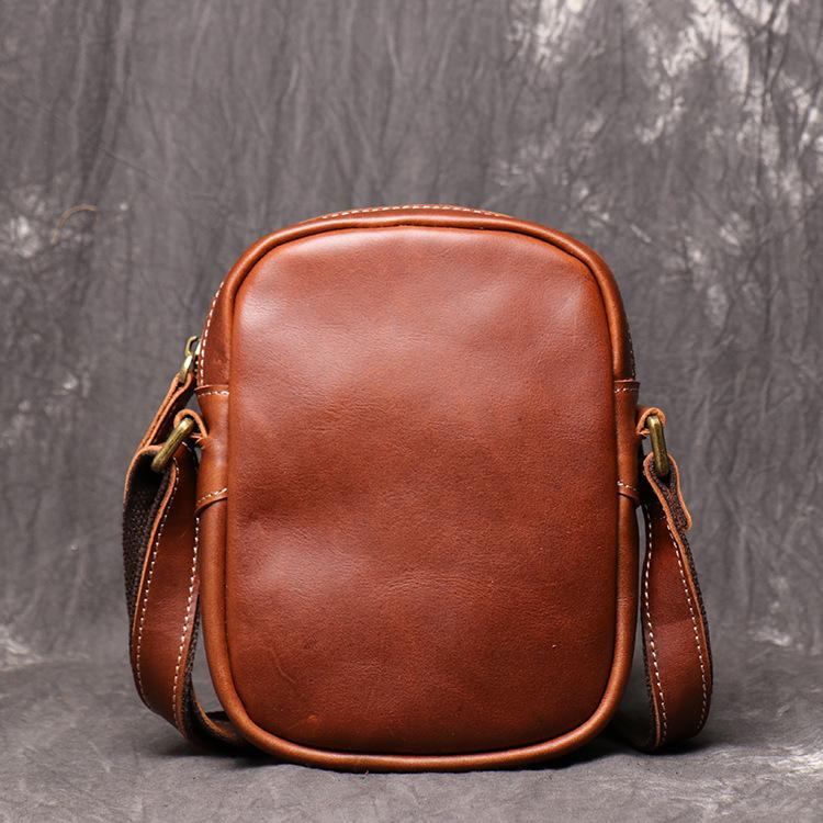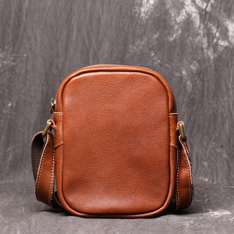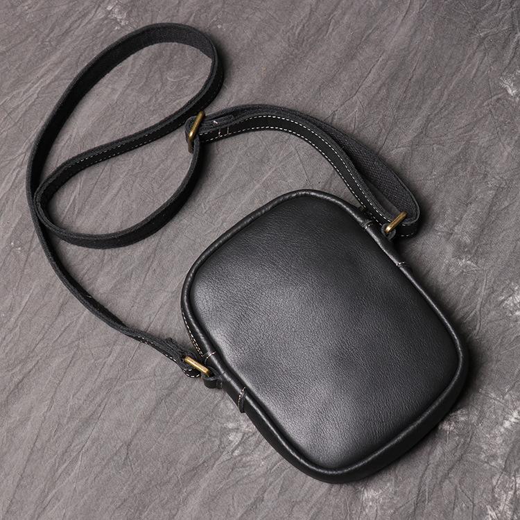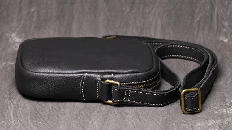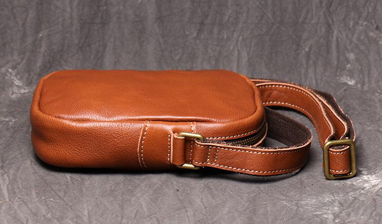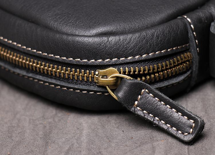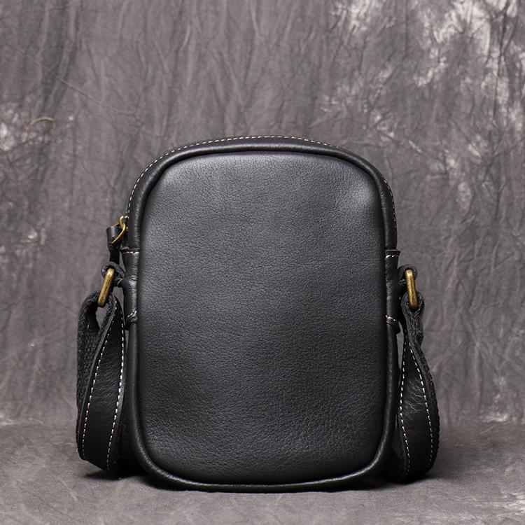 Design: Black Cool Leather 10 inches Small Zipper Messenger Bag Vertical Shoulder Bag Yellow Brown Side Bag For Men