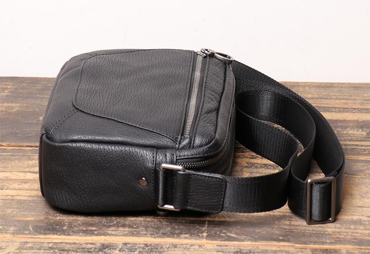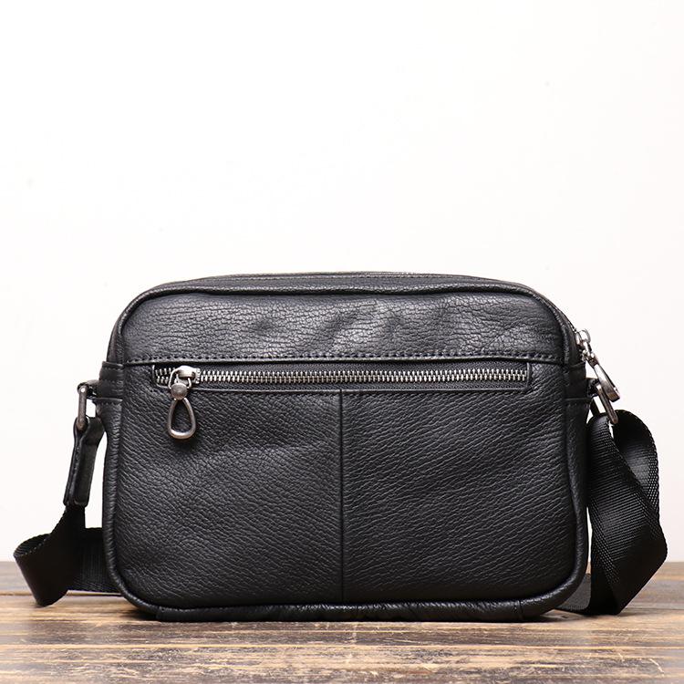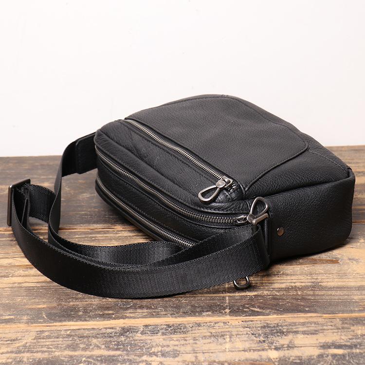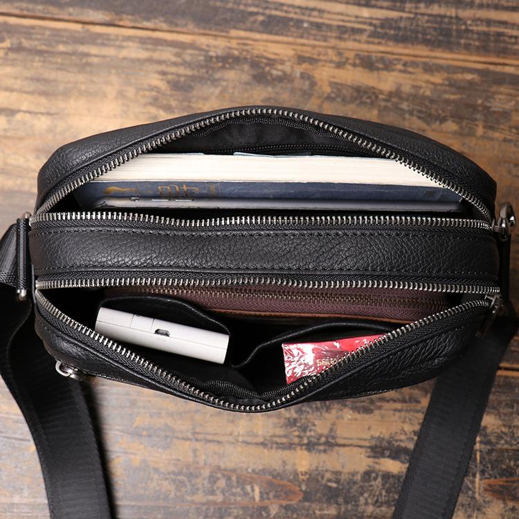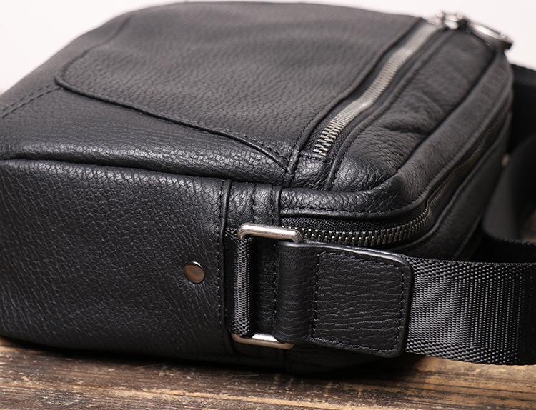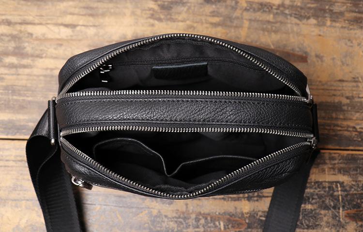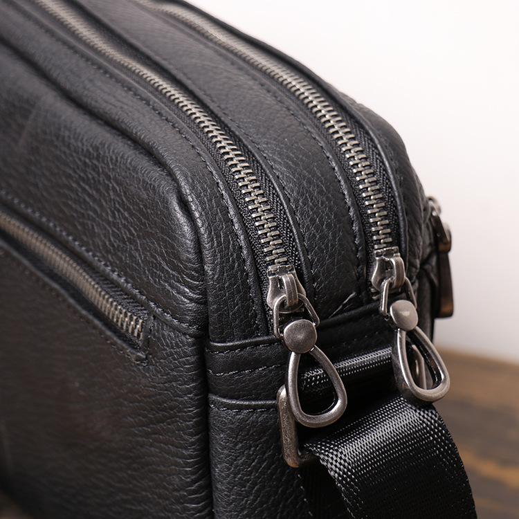 Design: Black Cool Leather 8 inches Zipper Messenger Bag Handbag Shoulder Bag For Men