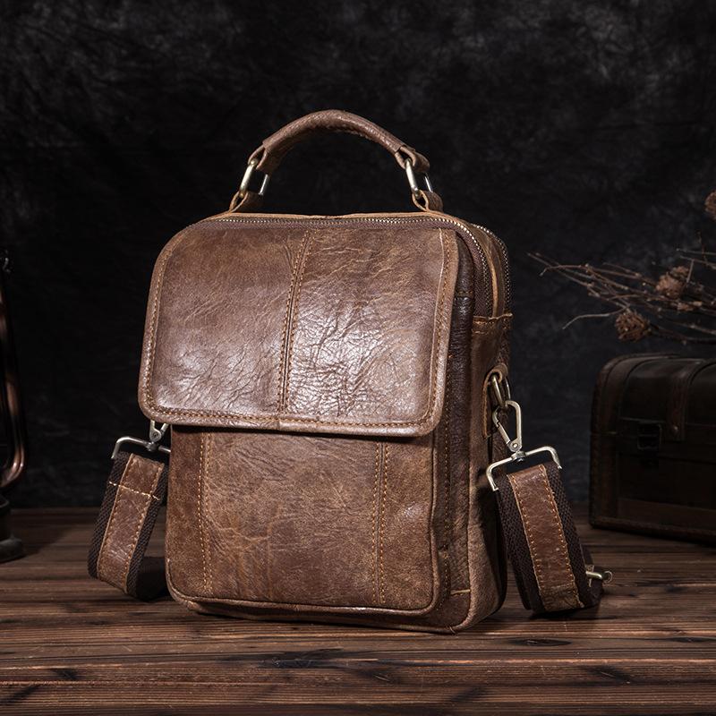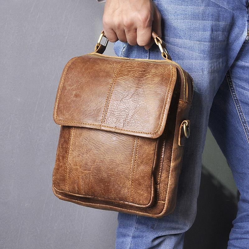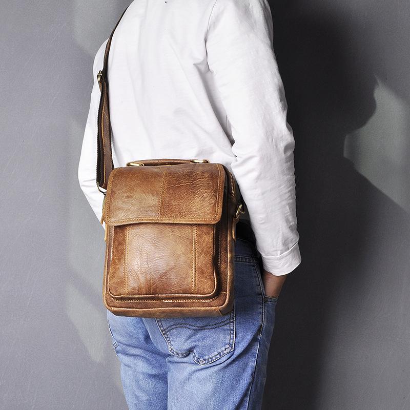 Style: Casual Yellow LEATHER MENS 10 inches Vertical SIDE BAG COURIER BAG Vertical MESSENGER BAG FOR MEN