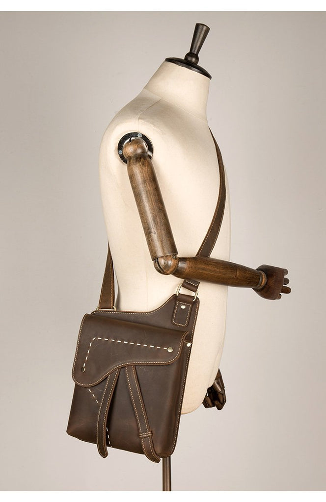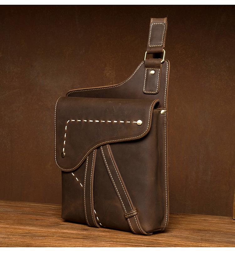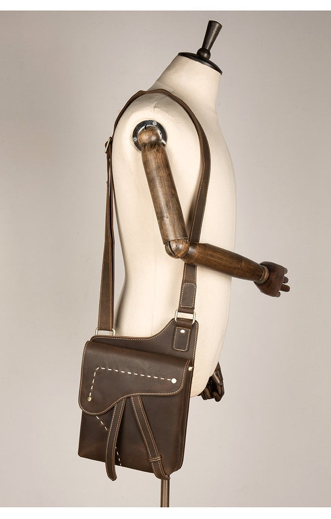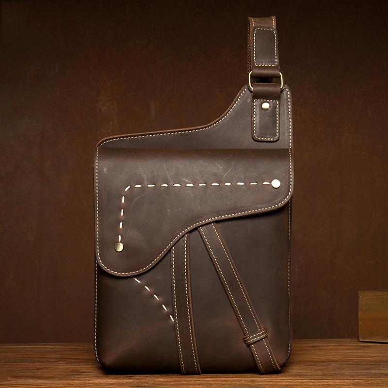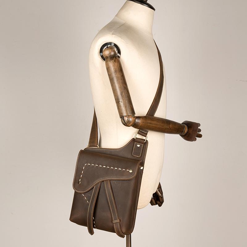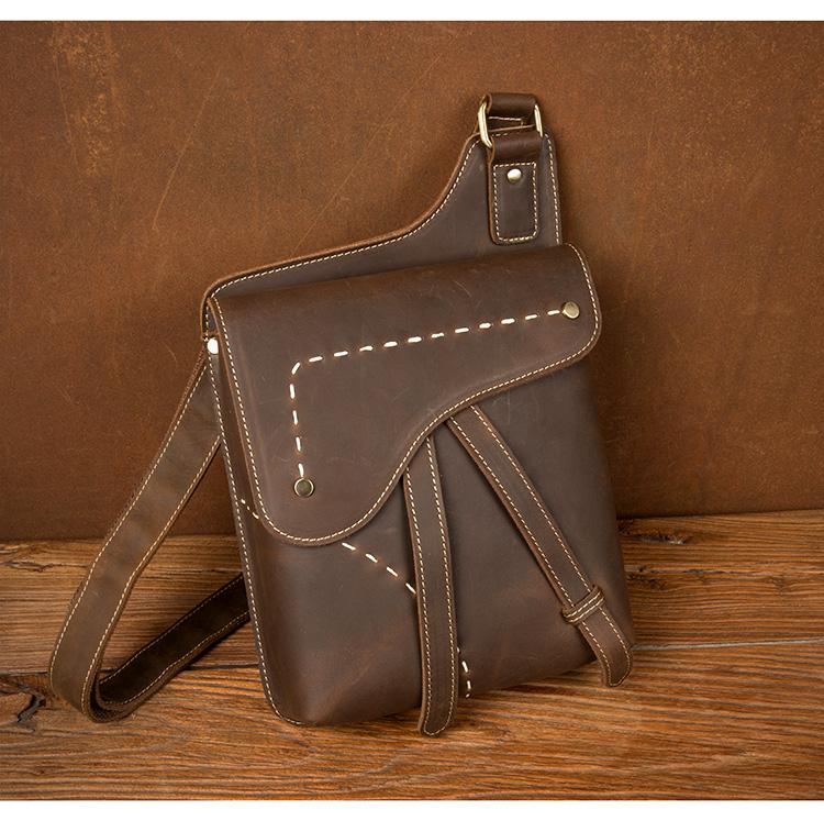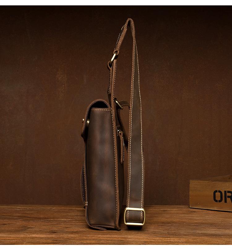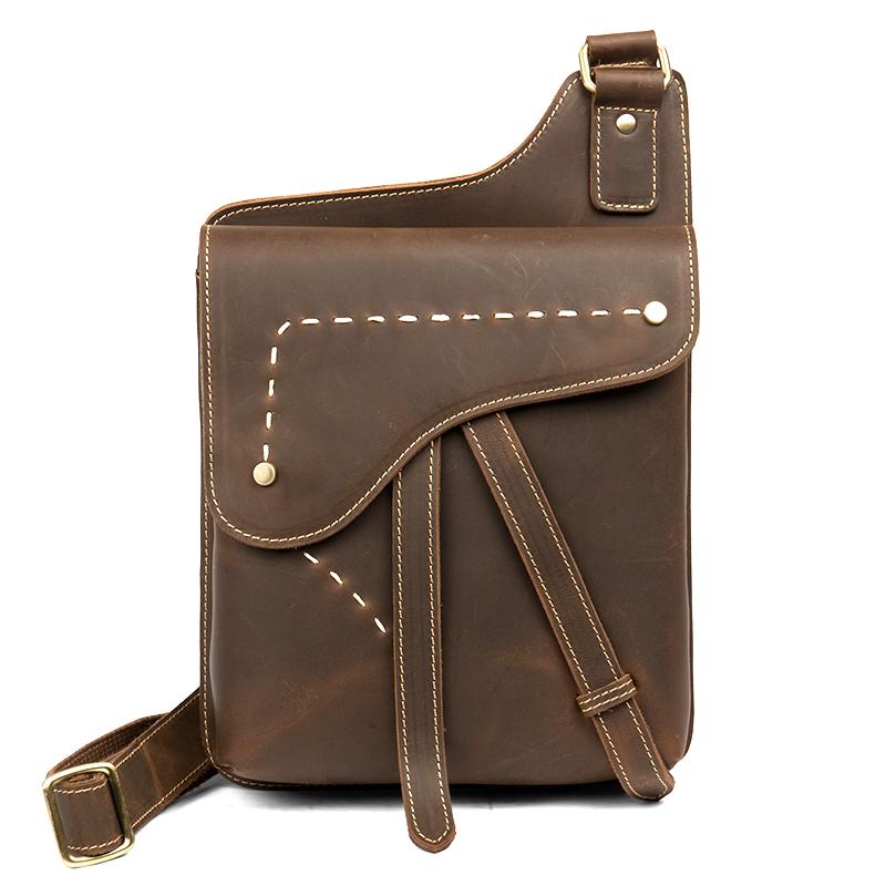 Cool Brown Mens Leather Small Side Bag Vintage Messenger Bags Courier Bag for Men