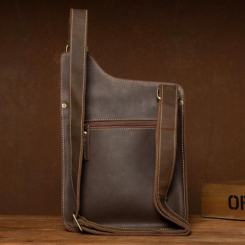 Design: Dark Brown Casual Leather 8 inches Shoulder Bag Messenger Bags Crossbody Bag for Men
