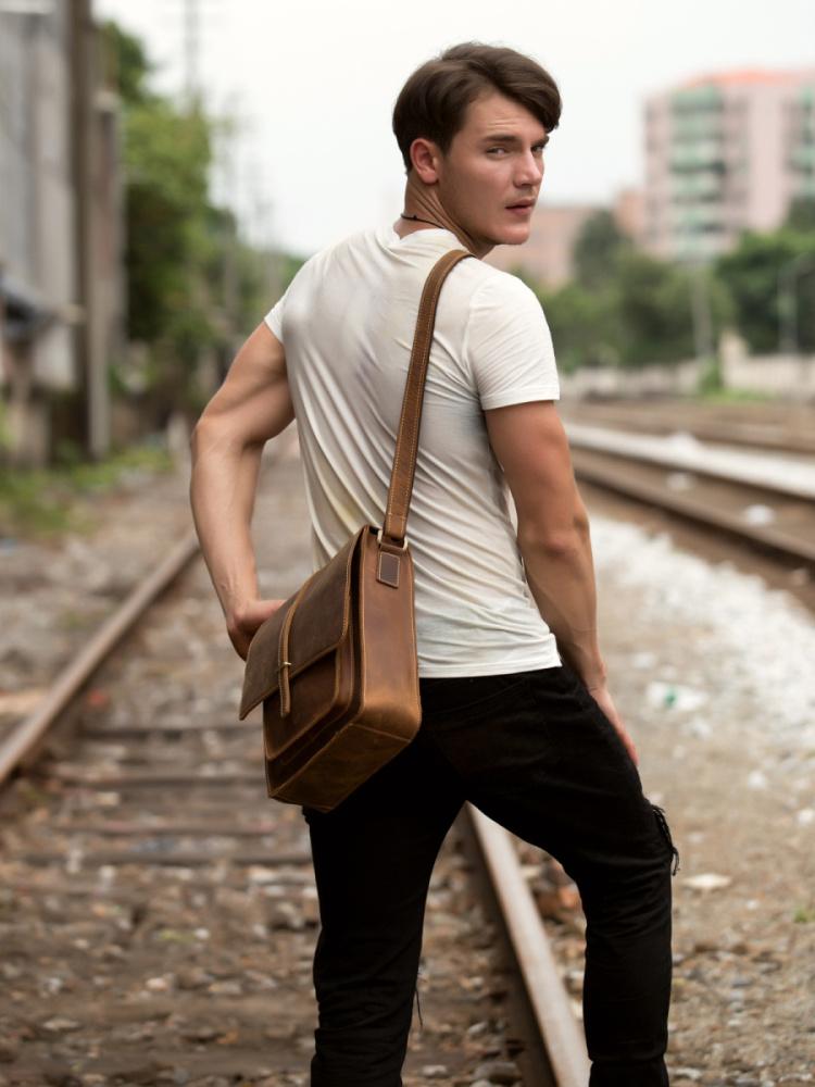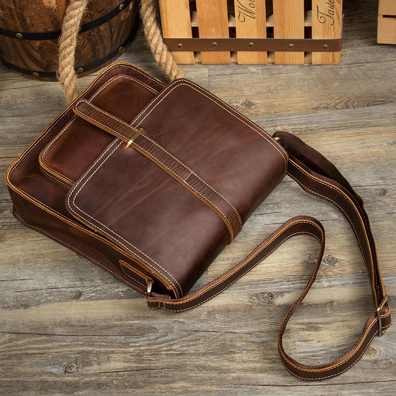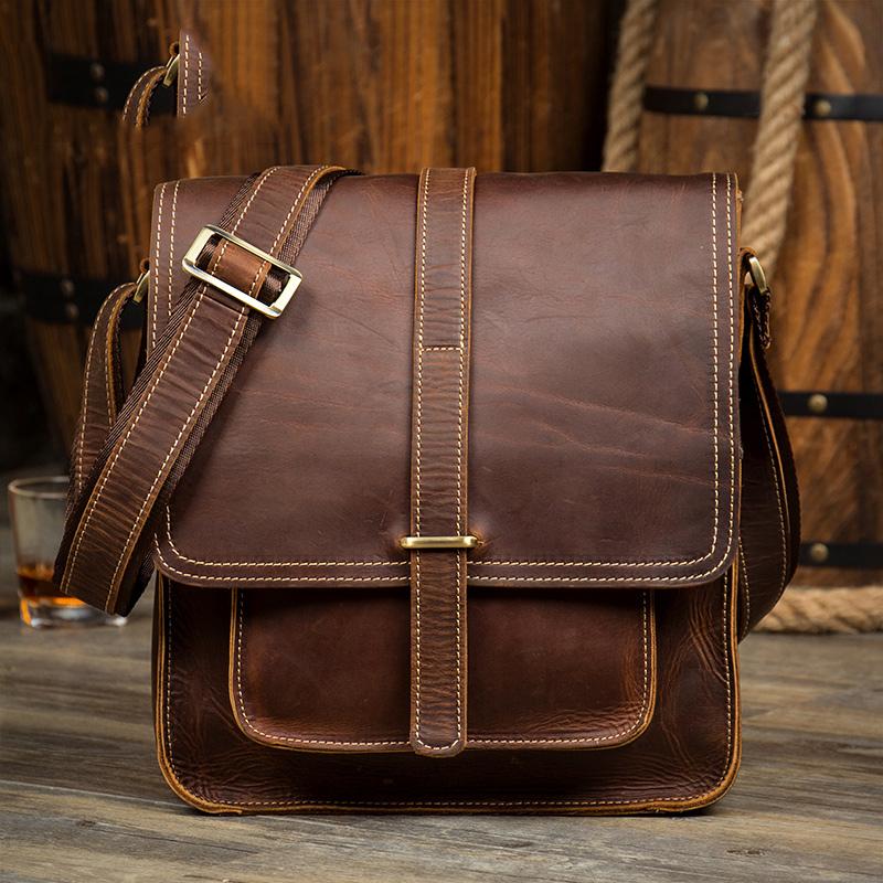 Design: Dark Brown Cool Leather 10 inches Shoulder Bags Messenger Bag Crossbody Bag for Men