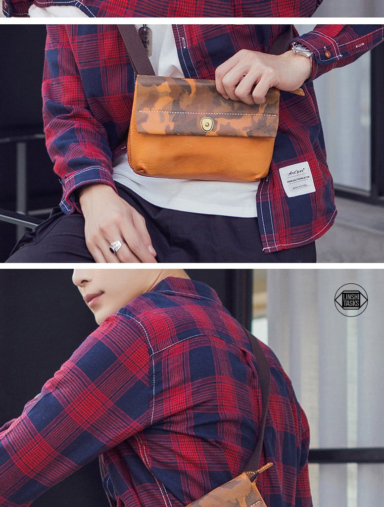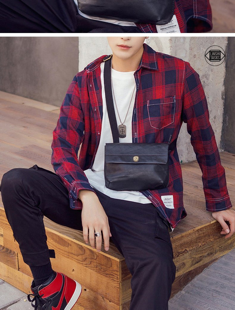 Design: Fashionable Black Leather Mens Small Side Bag Messenger Bags Casual Shoulder Bags for Men