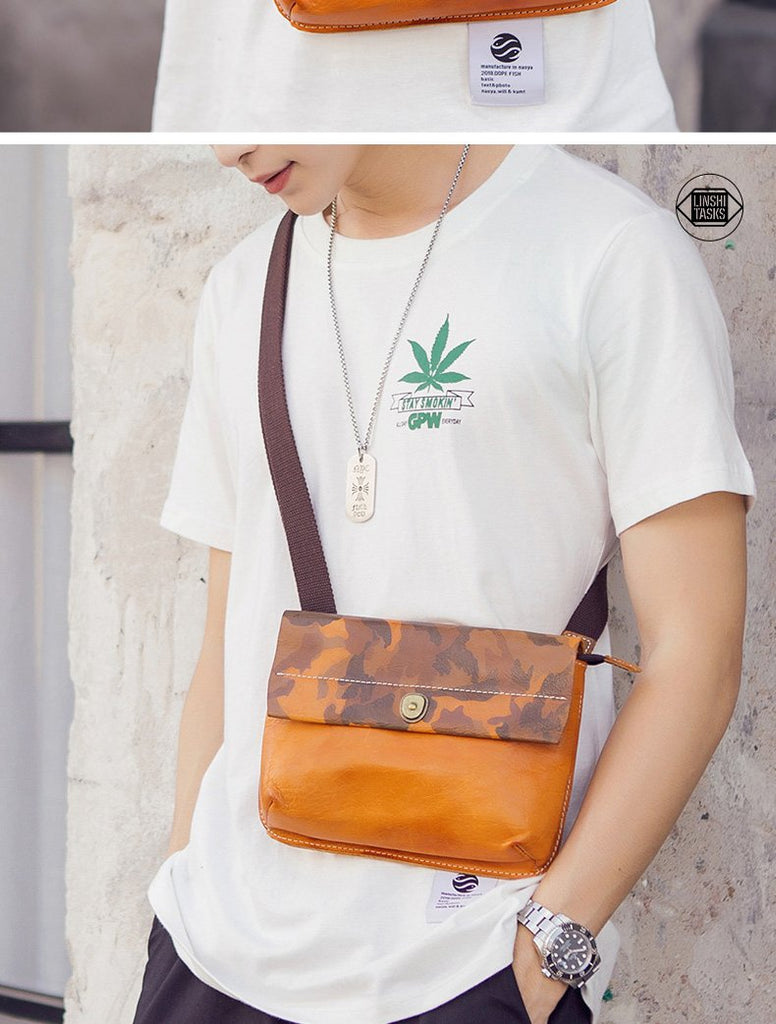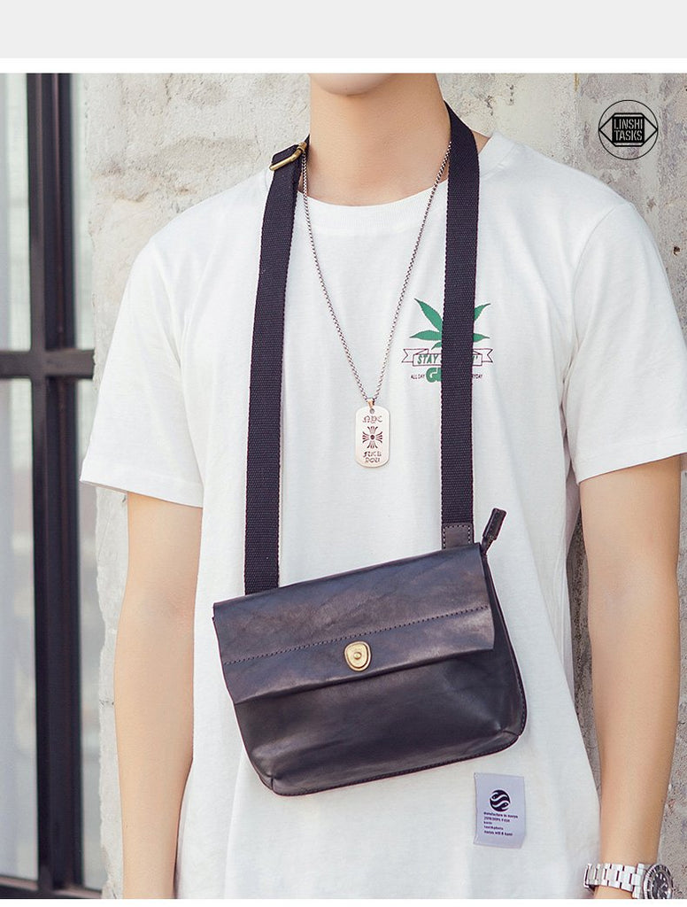 Style: Fashionable Black Leather Mens Small Side Bag Messenger Bags Casual Shoulder Bags for Men