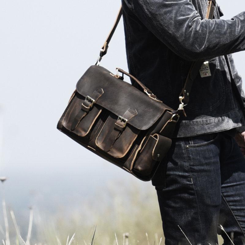 Design: Genuine Leather Mens Cool Messenger Bag Briefcase Work Bag Business Bag for men