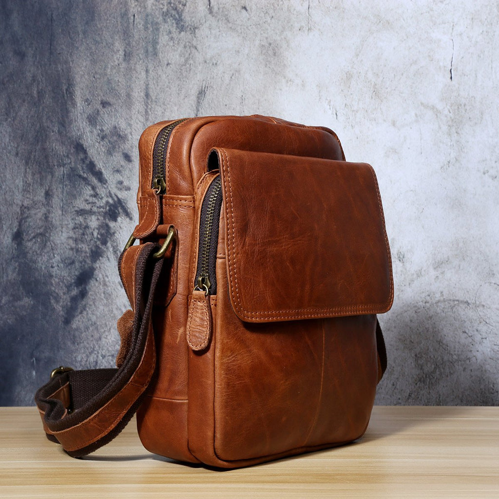 Design: Genuine Leather Mens Cool Messenger Bag Small Bag Chest Bag Bike Bag Cycling Bag for men