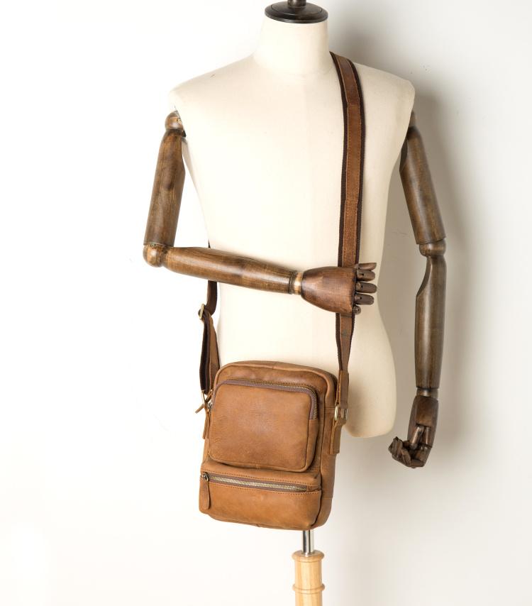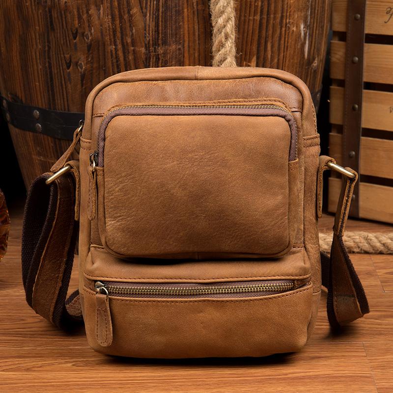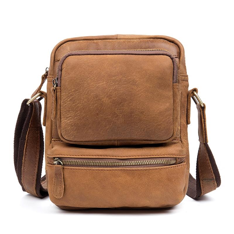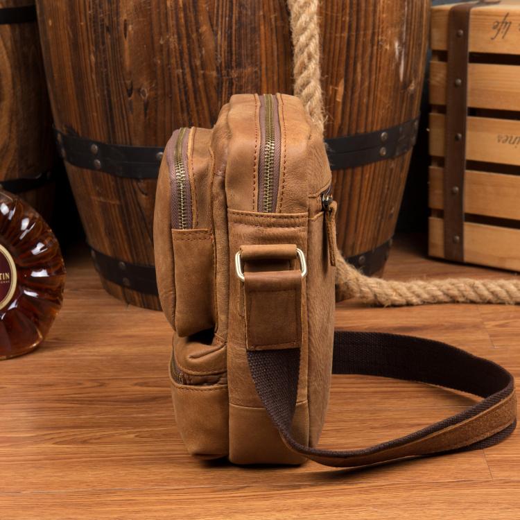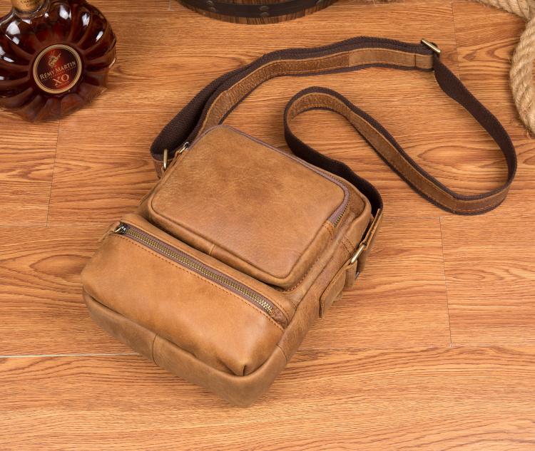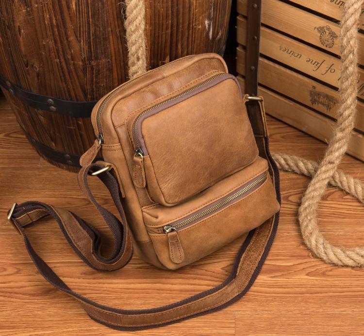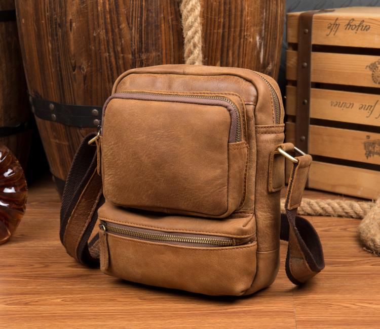 Design: Khaki Cool Leather 10 inches Shoulder Bag Messenger Bag Crossbody Bags for Men