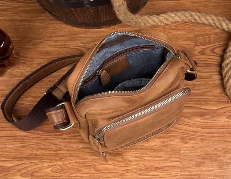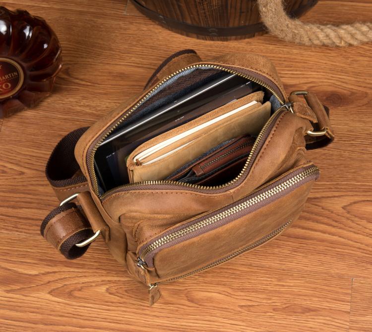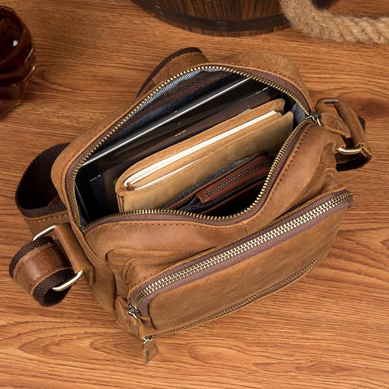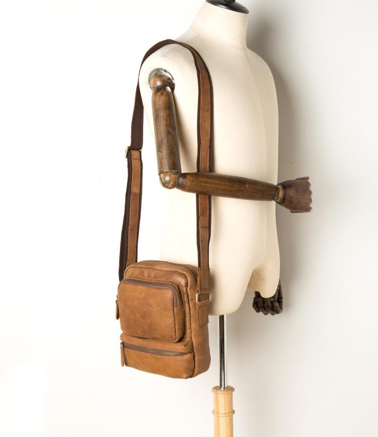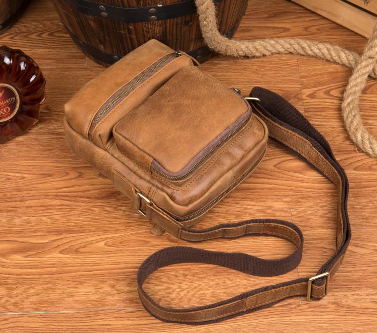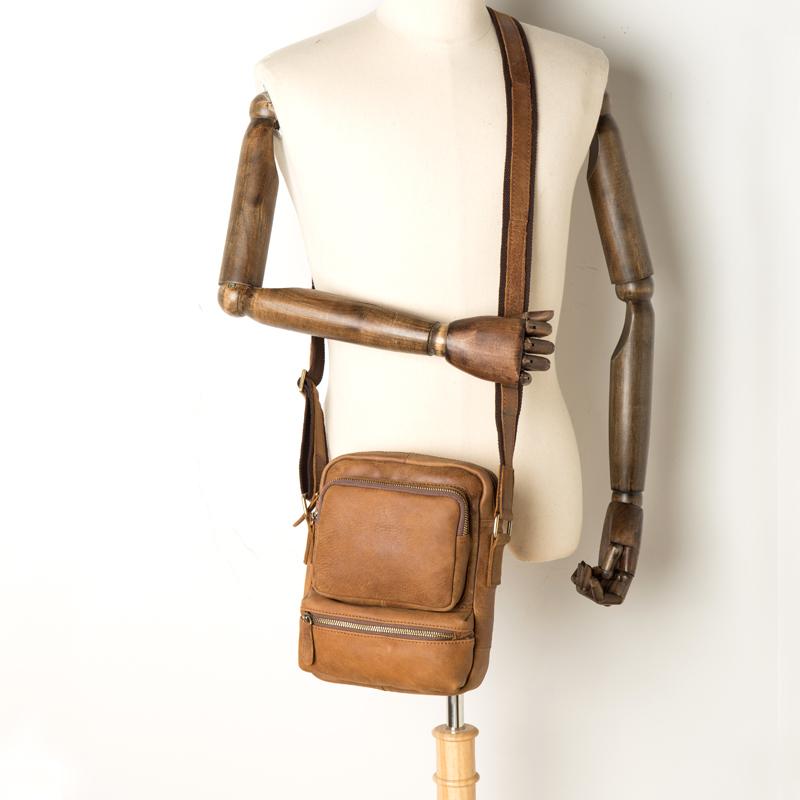 Design: Khaki Cool Leather 10 inches Shoulder Bag Messenger Bag Crossbody Bags for Men