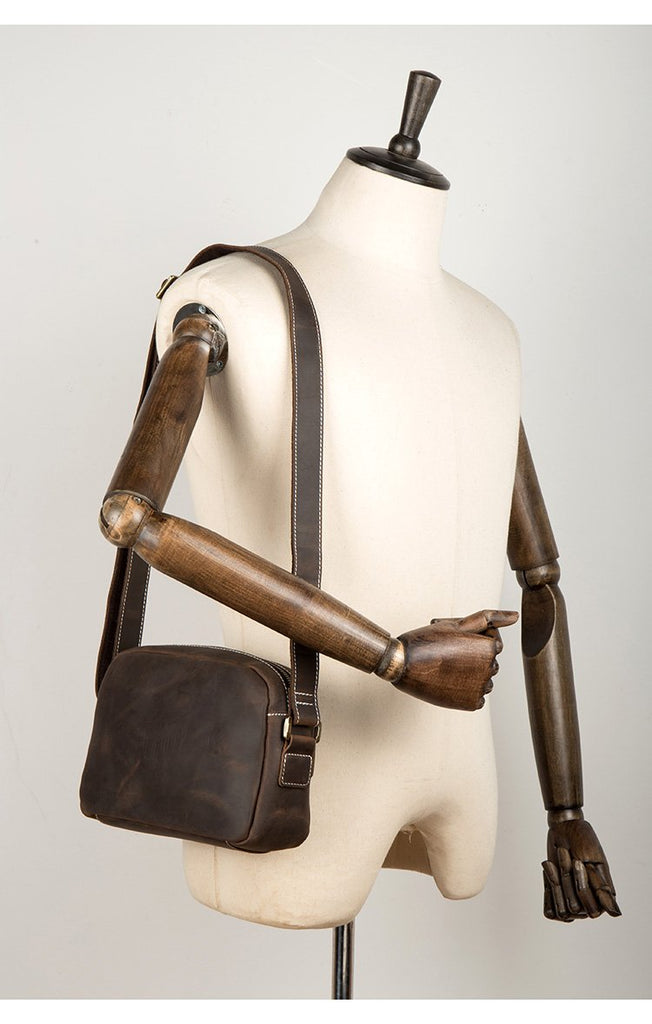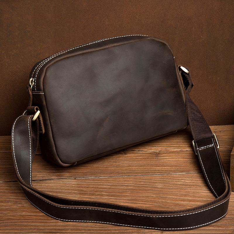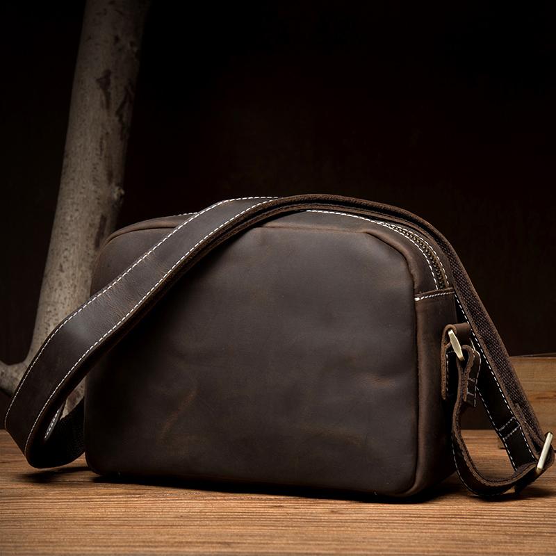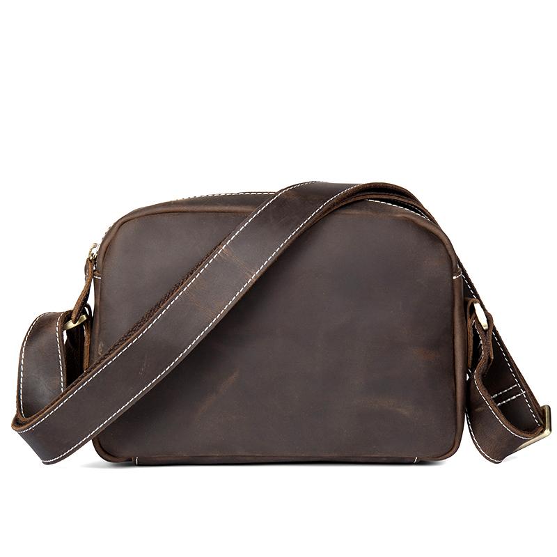 Style: Light Brown Cool Leather 8 inches Shoulder Bag Messenger Bags Crossbody Bag for Men