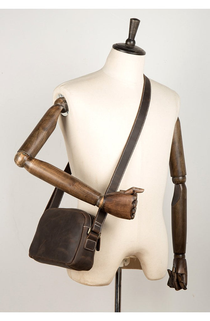 Coffee Cool Leather Side Bag Small Postman Bag Messenger Bag Courier Bag for Men