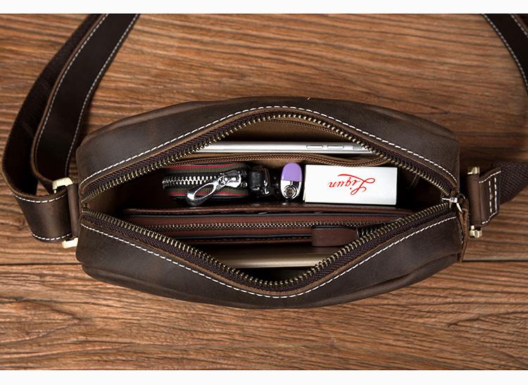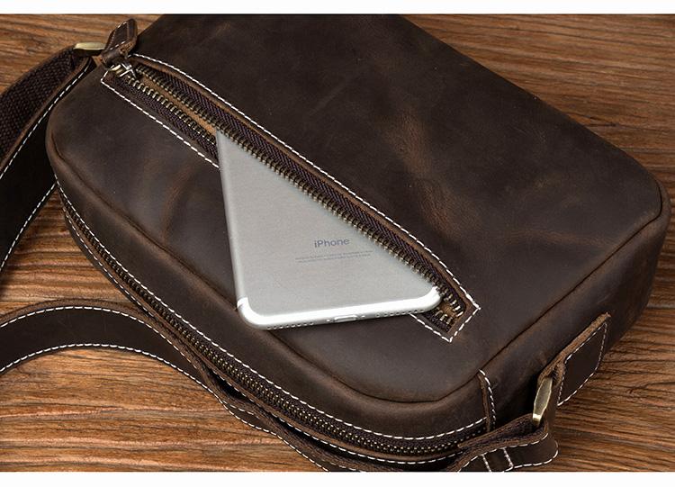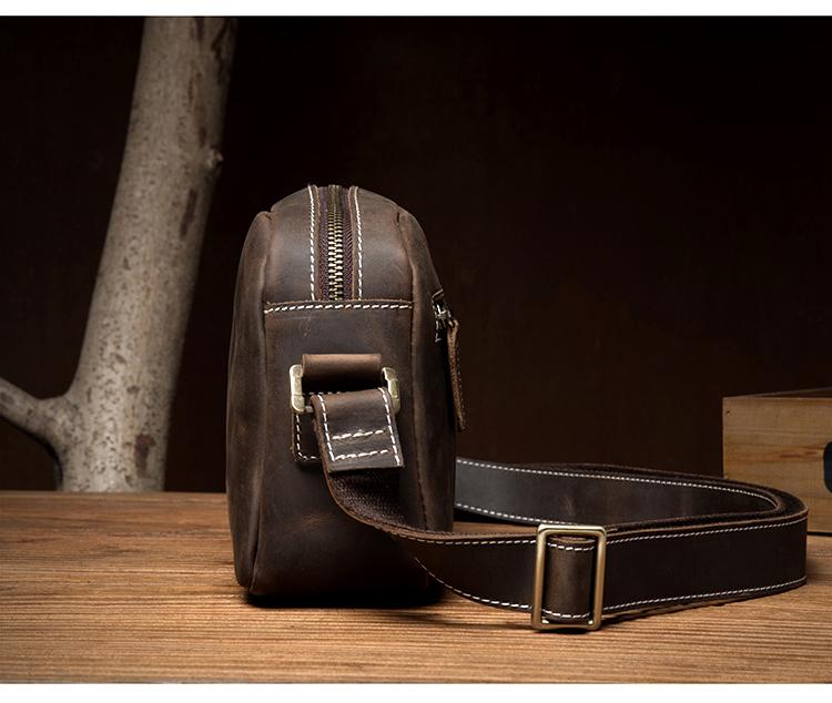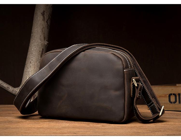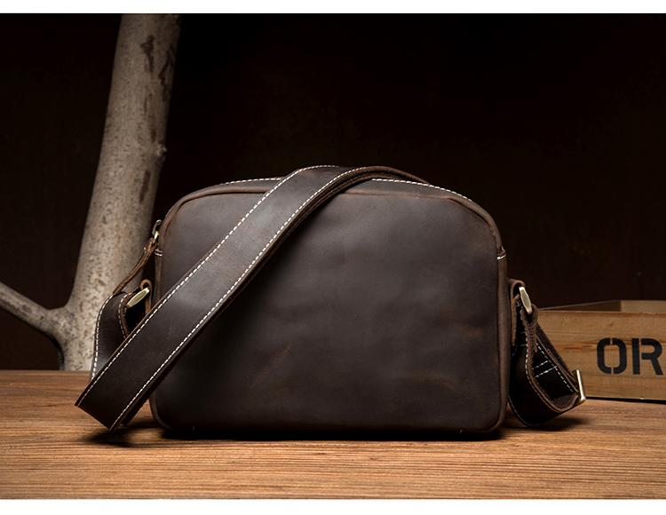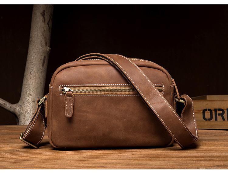 Design: Light Brown Cool Leather 8 inches Shoulder Bag Messenger Bags Crossbody Bag for Men