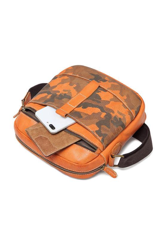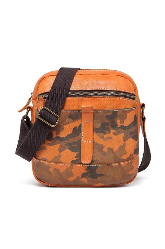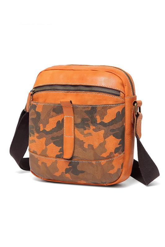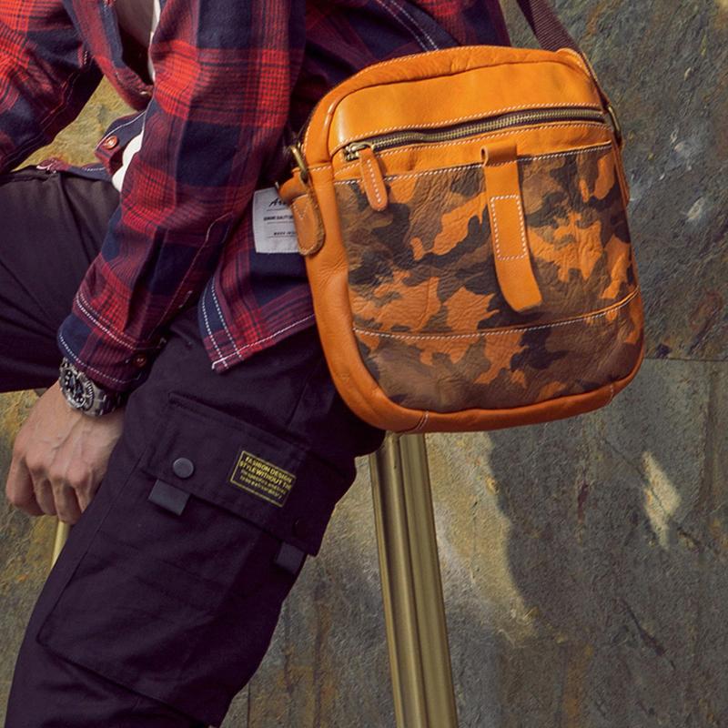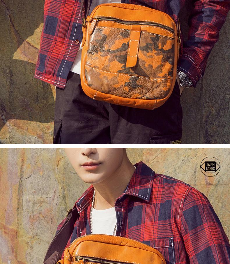 Design: Yellow Cool Leather Mens Camouflage Vertical Side Bag Small Messenger Bags Casual Bicycle Bags for Men