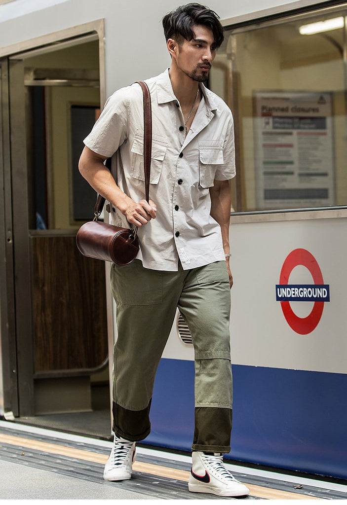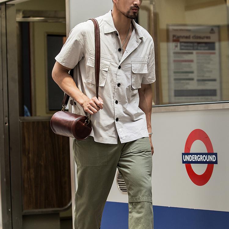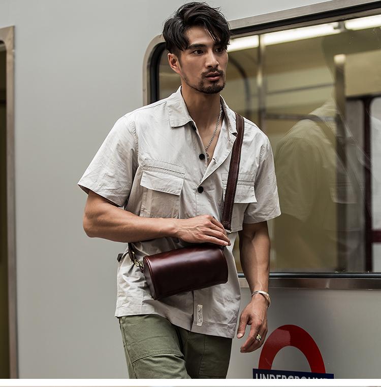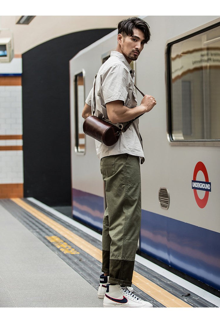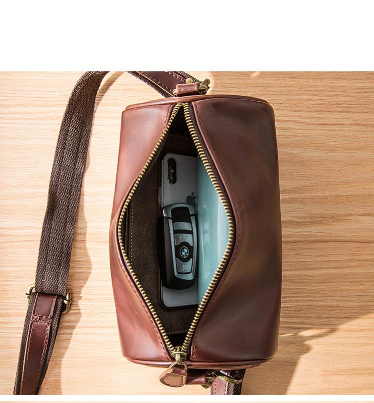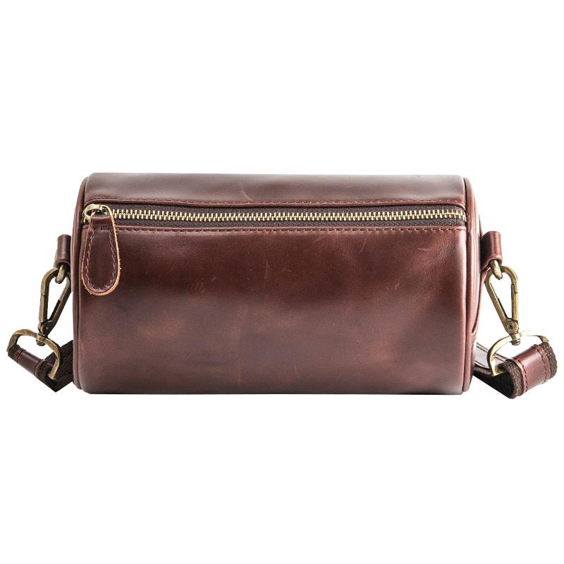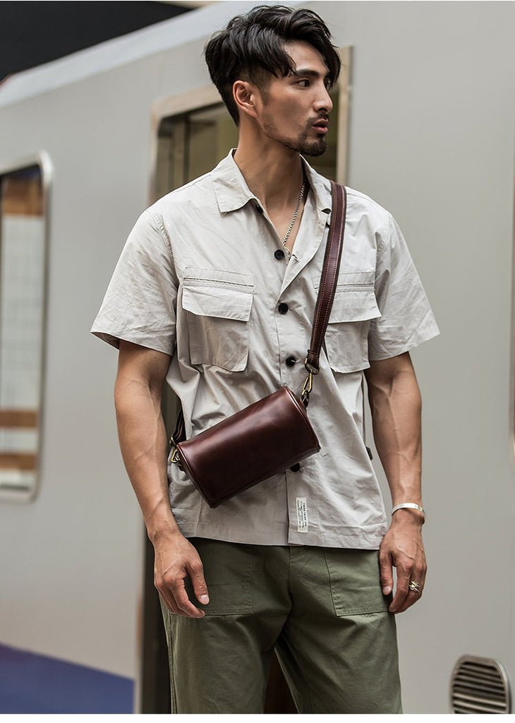 Red Brown Cool Leather Mens 8 inches Barrel Side Bag Bucket Messenger Bags Courier Bag for Men