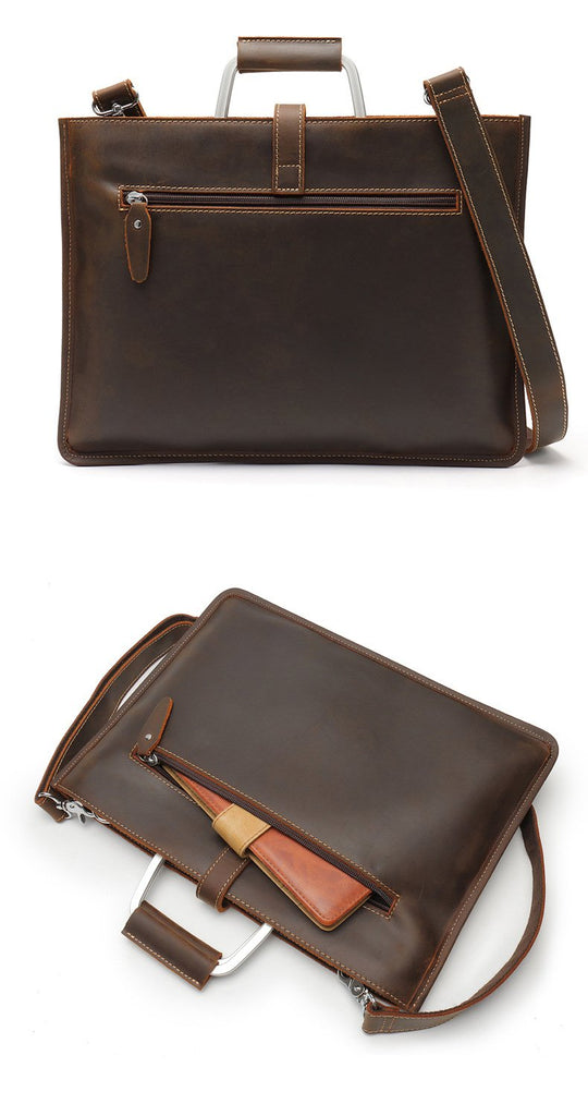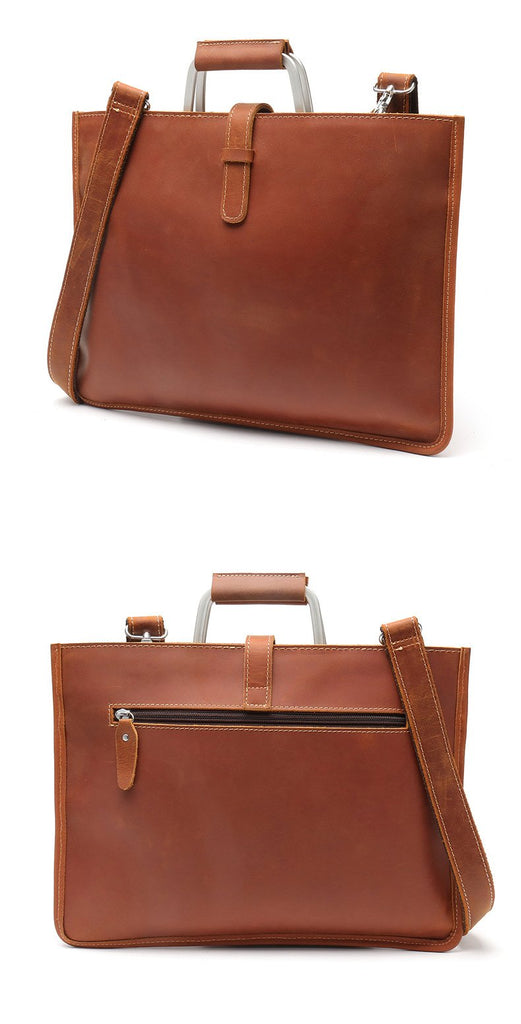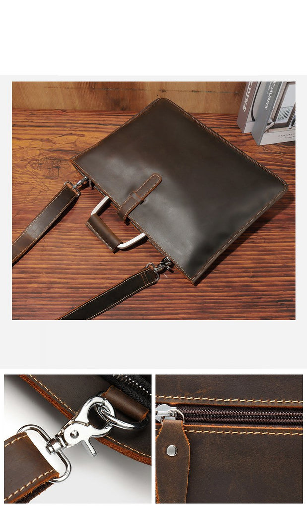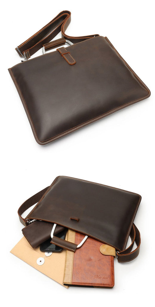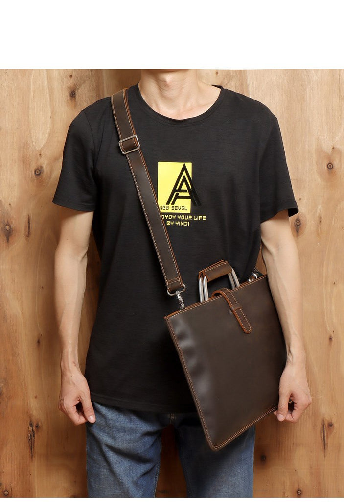 Design: Simple Brown Leather Men's 13 inches Side Courier Bag Messenger Bag Computer Bag School Bag For Men