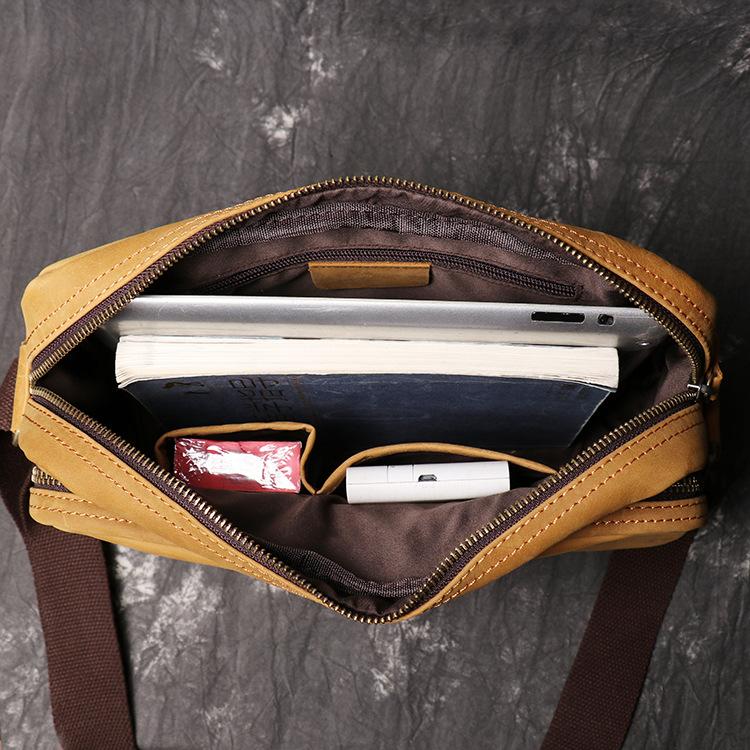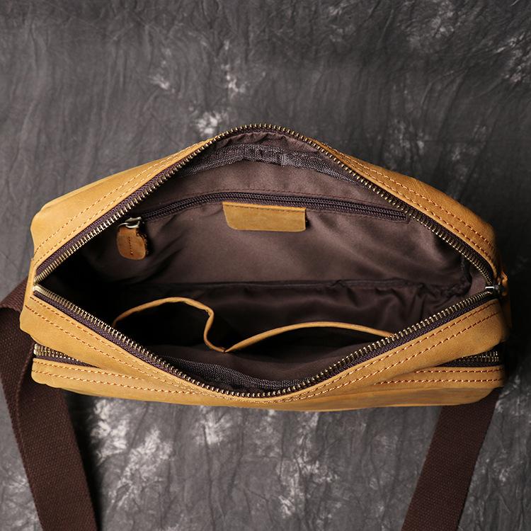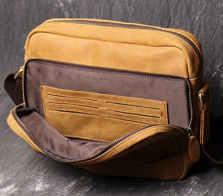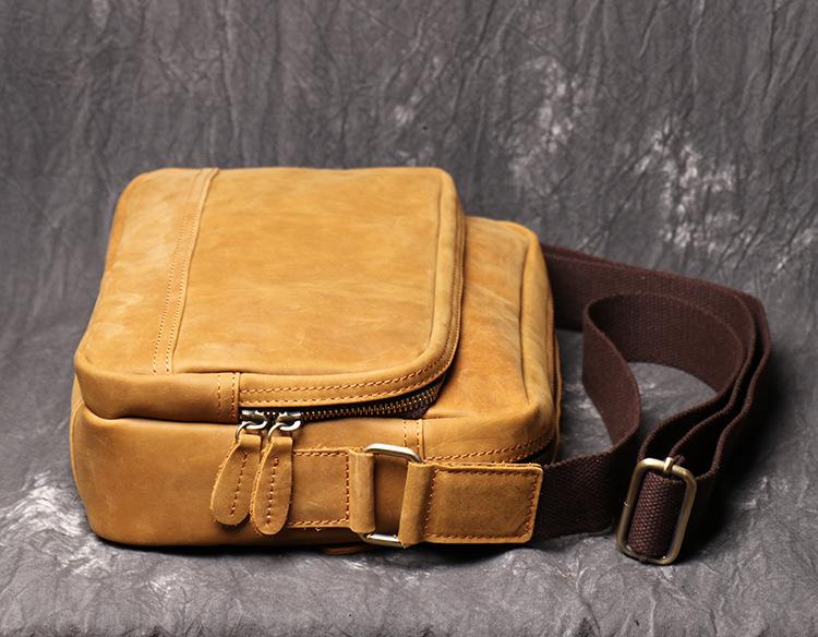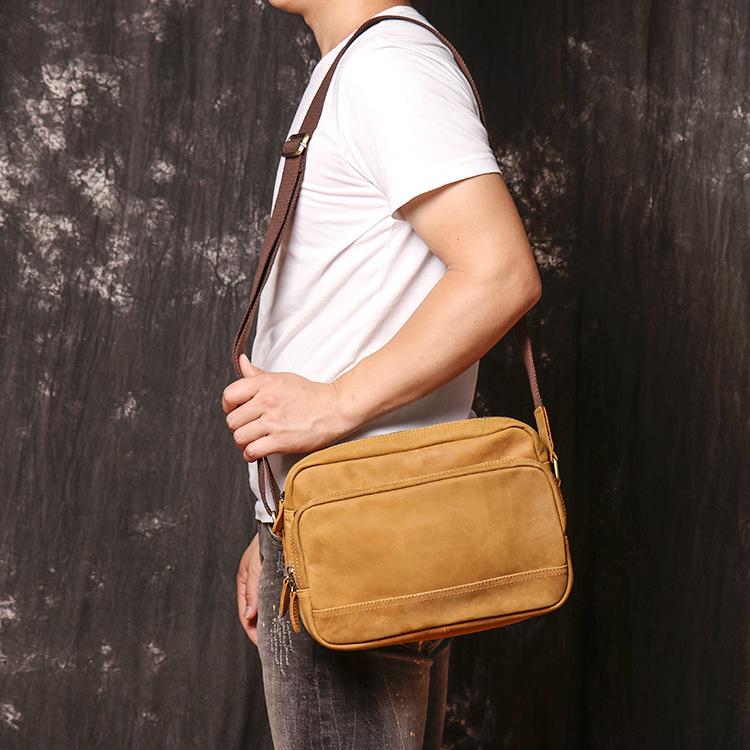 Design: Simple Yellow Brown Leather Men's Vertical Side Bag 10inch Vertical Messenger Bag For MenOverview: